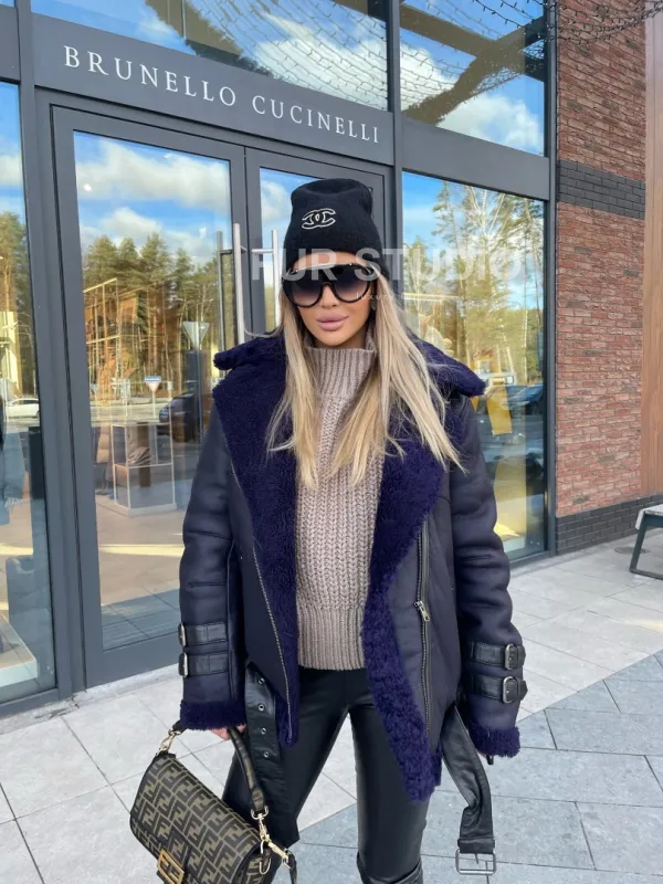 Натуральная овчина позаботится о комфортной температуре тела в любую непогоду и холода. Широкие рукава не сковывают движения, что очень удобно для тех, кто водит машину. Добавьте в образ стильный рюкзак и грубые ботинки - будете выглядеть дерзко, но очень женственно. Купить авиатор из натуральной овчины в синем цвете могут девушки, которые следят за модой и не боятся экспериментировать.