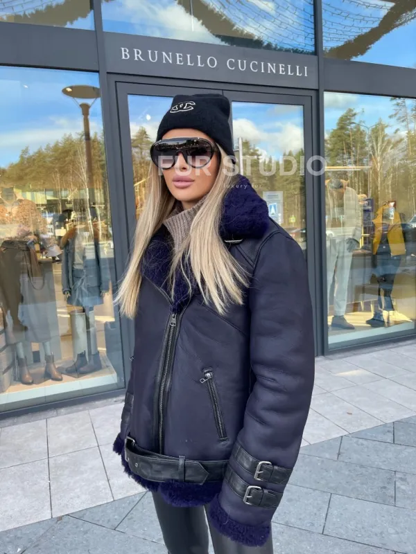 Авиатор из натуральной овчины в синем цвете – выбор свободных девушек, которые любят быть в тренде. Модель – хит сезона этой зимы. В таком образе вы будете выглядеть стильно и дерзко. Кожаные ремни и застежки в виде аксессуаров подчеркивают оригинальность изделия. Необычный оттенок выгодно выделит цвет волос и глаз владелицы.