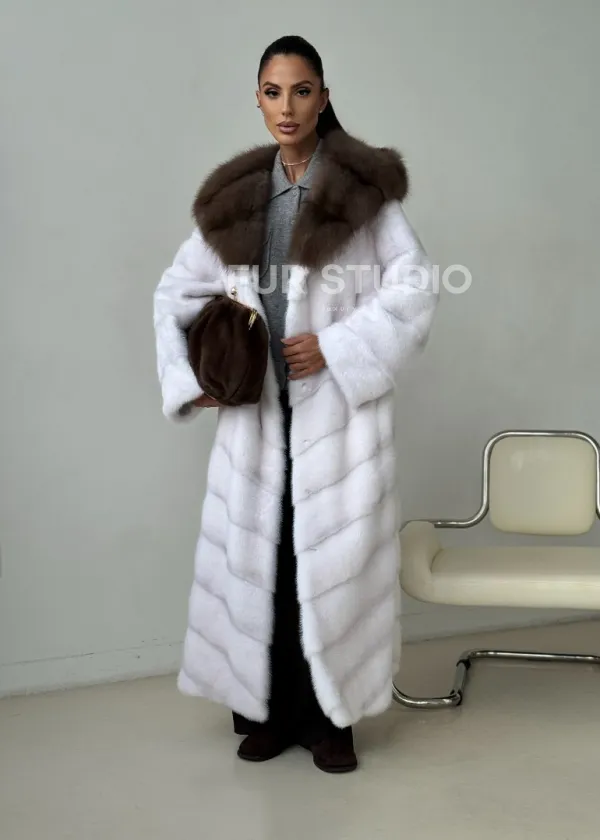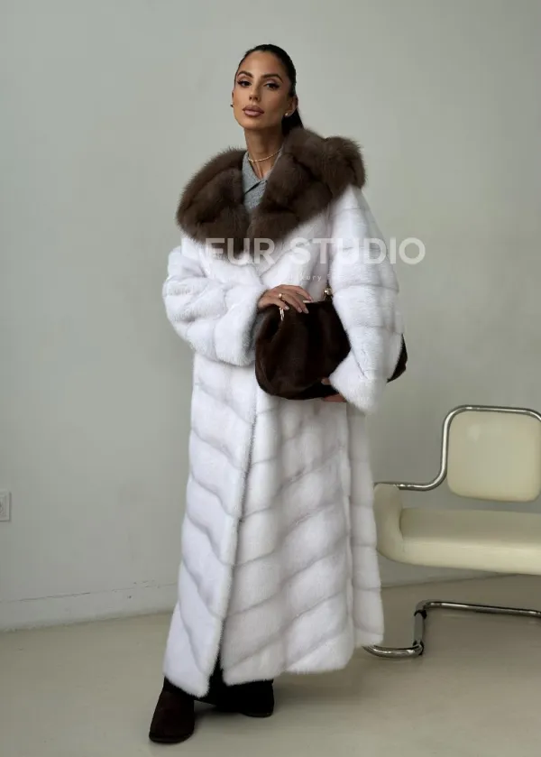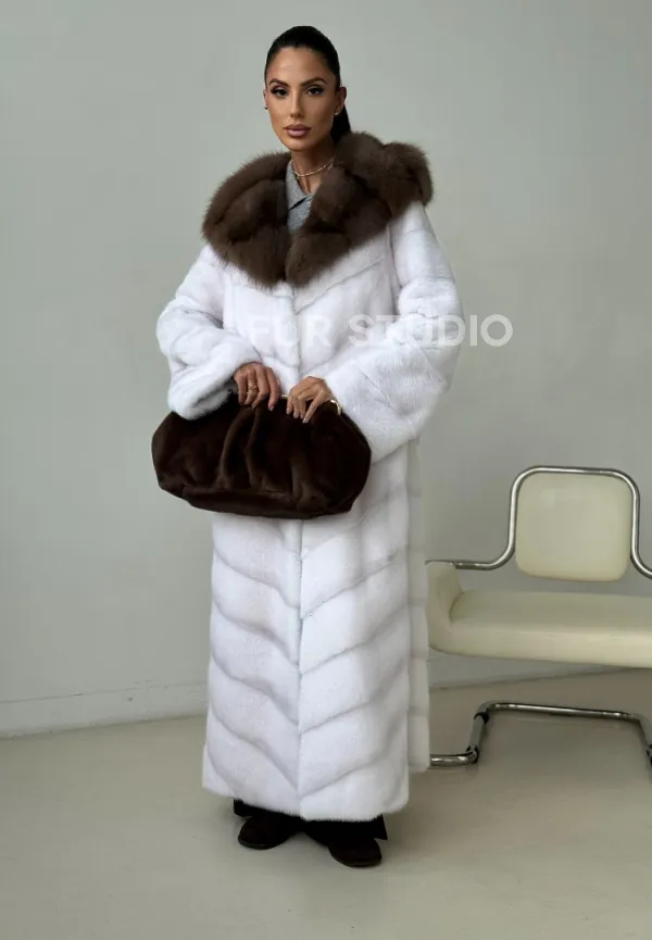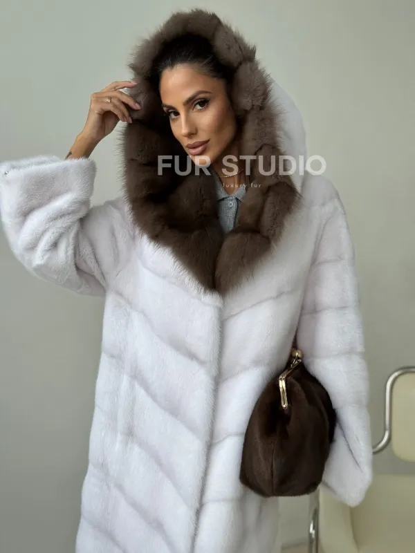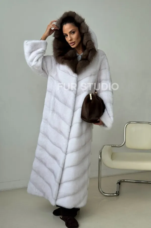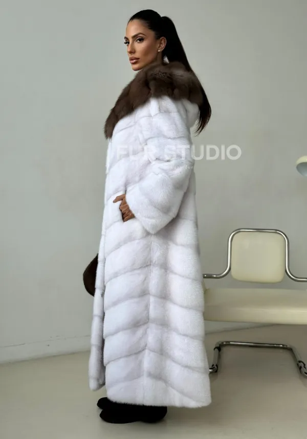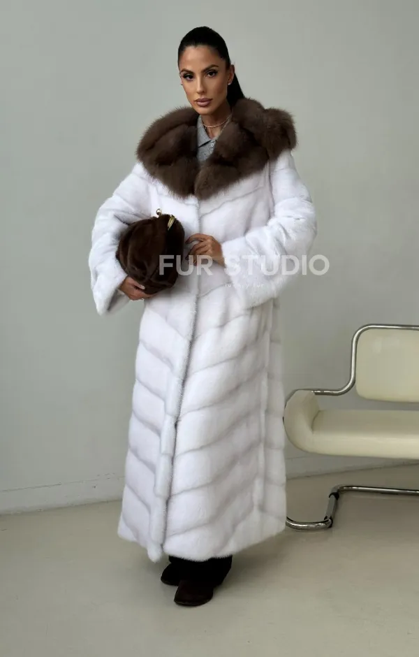 Белая норковая шуба с куницей капюшон доступна для покупки в нашем шоуруме Furs Studio в . У нас так же есть доставка во все города России. Добавьте немного роскоши в свой гардероб с этой шубой, которая будет служить вам многие годы.