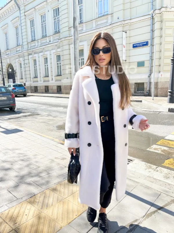 Белая шерстяная шуба - тедди 102234