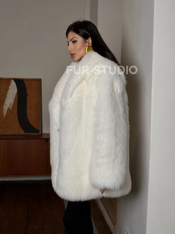 Белая шуба из меха лисы - воротник шаль 101456