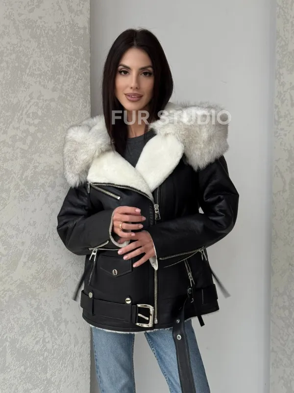 Черная куртка дубленка с капюшоном. Модель предлагается в размерах от 42 до 54. Оптимальная длина моделей 60-65 см подчеркивает линии вашей фигуры. Эта дубленка станет неотъемлемой частью гардероба для тех, кто предпочитает роскошь и утонченность натуральной кожи.