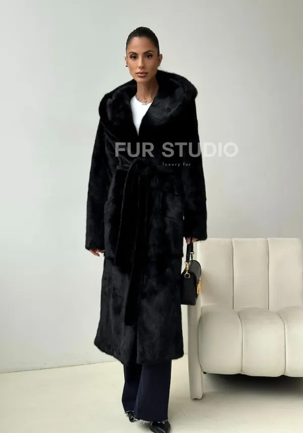 Черная норковая шуба с капюшоном доступна для покупки в нашем шоуруме Furs Studio в . У нас так же есть доставка во все города России. Добавьте немного роскоши в свой гардероб с этой шубой, которая будет служить вам многие годы.