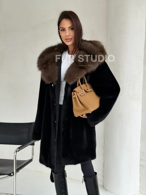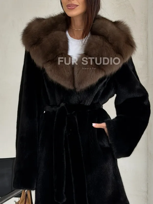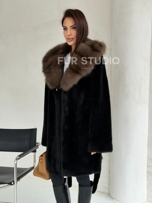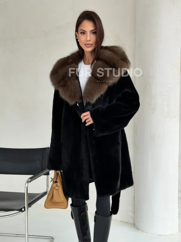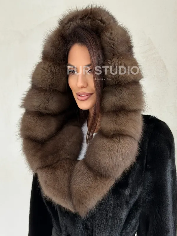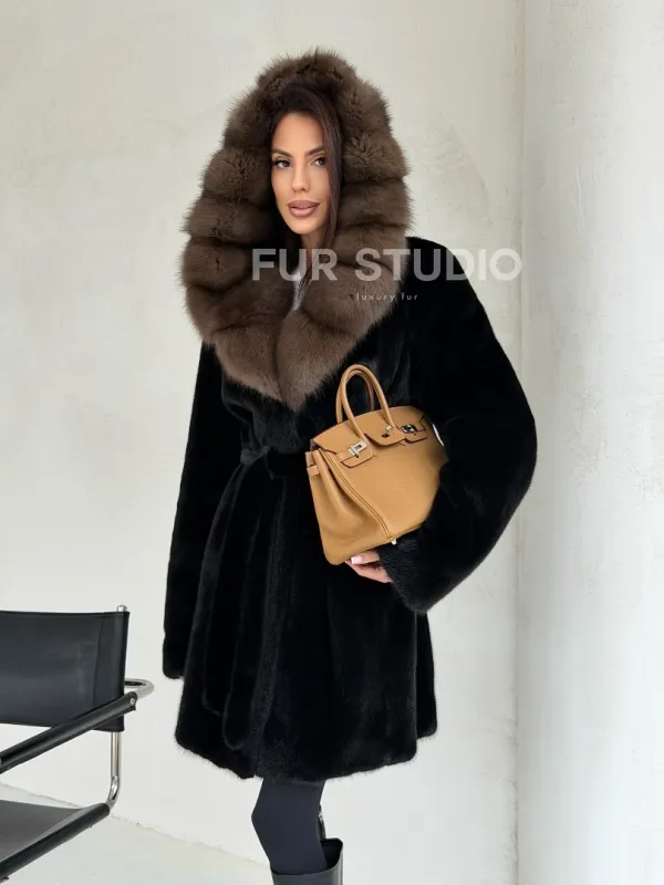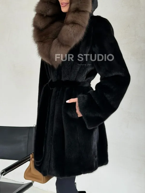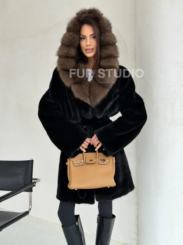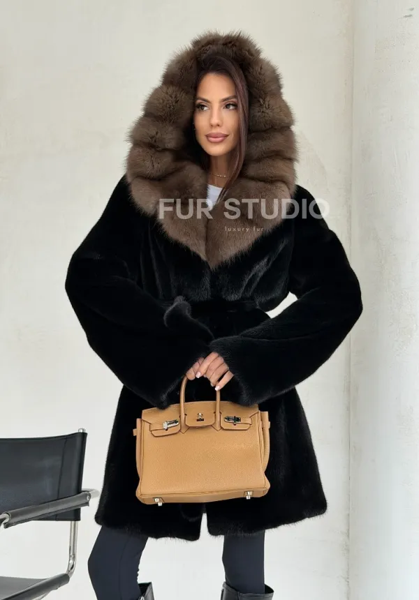 Черная норковая шуба средней длины - капюшон куница доступна для покупки в нашем шоуруме Furs Studio в . У нас так же есть доставка во все города России. Добавьте немного роскоши в свой гардероб с этой шубой, которая будет служить вам многие годы.