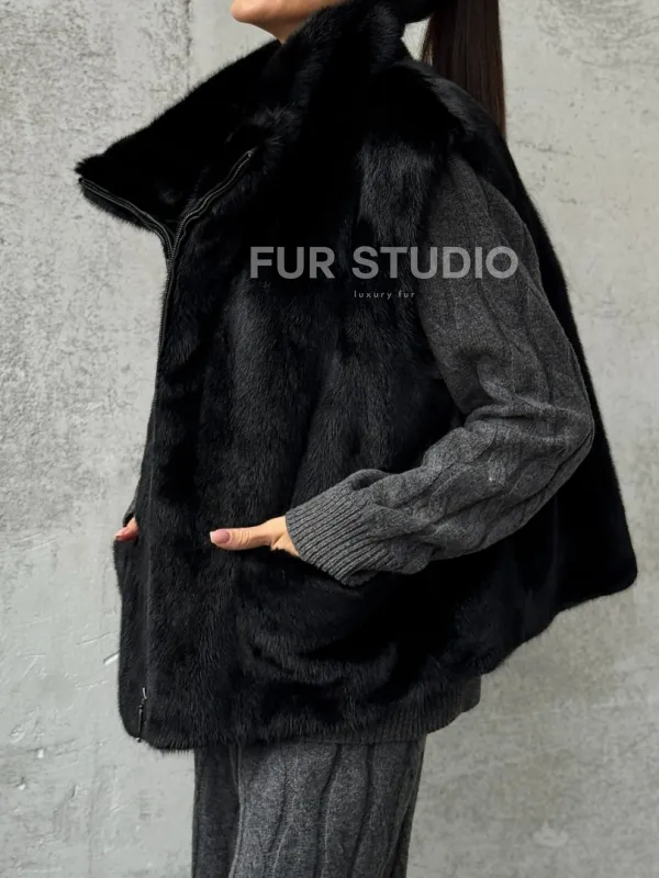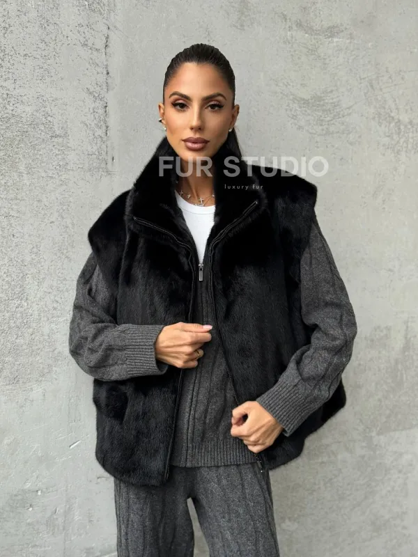 Очаруйтесь изысканной красотой и непревзойденным комфортом с нашей эксклюзивной коллекцией элитных жилетов. Изготовленный из первоклассного натурального меха, Черная норковая жилетка не только согреет вас в холодные зимние дни, но и подчеркнет ваш безупречный стиль.