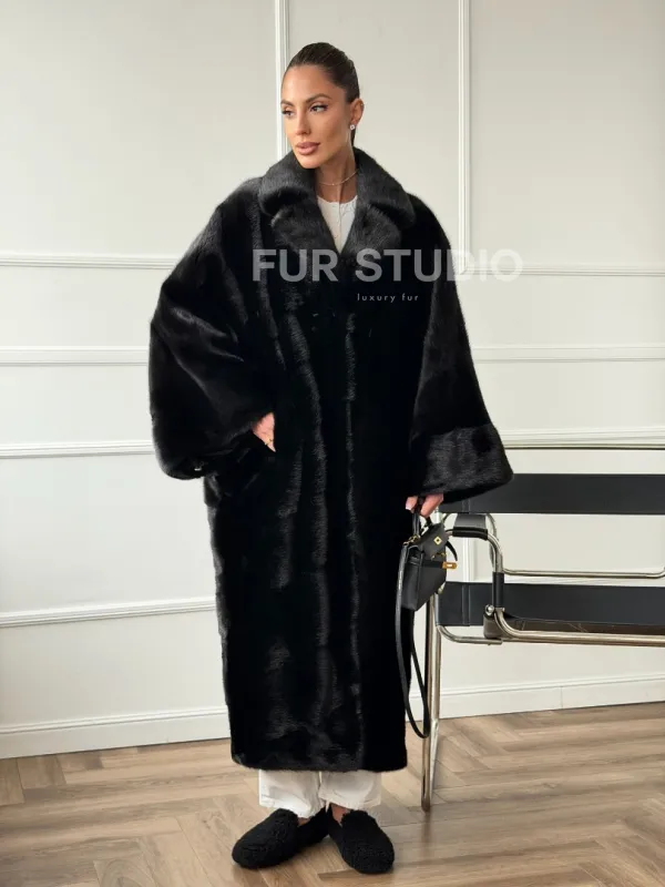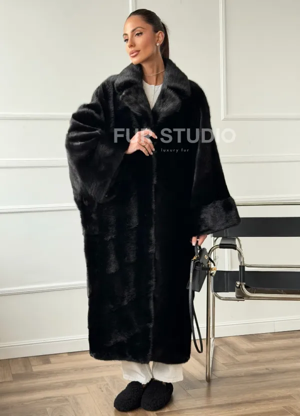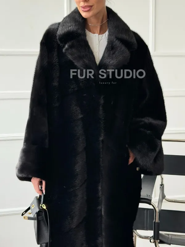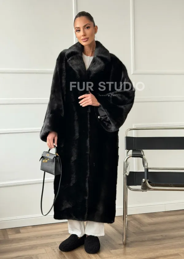 Черное меховое норковое пальто в стиле "Бохо" 102670
