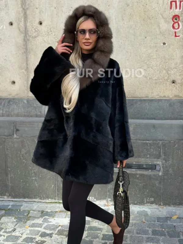 Черный норковый полушубок с капюшоном куница доступна для покупки в нашем шоуруме Furs Studio в . У нас так же есть доставка во все города России. Добавьте немного роскоши в свой гардероб с этой шубой, которая будет служить вам многие годы.