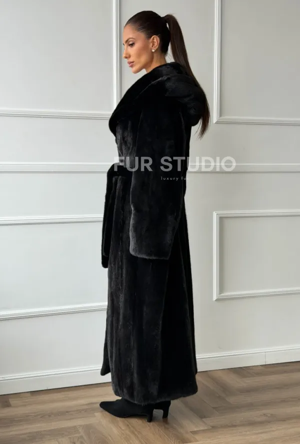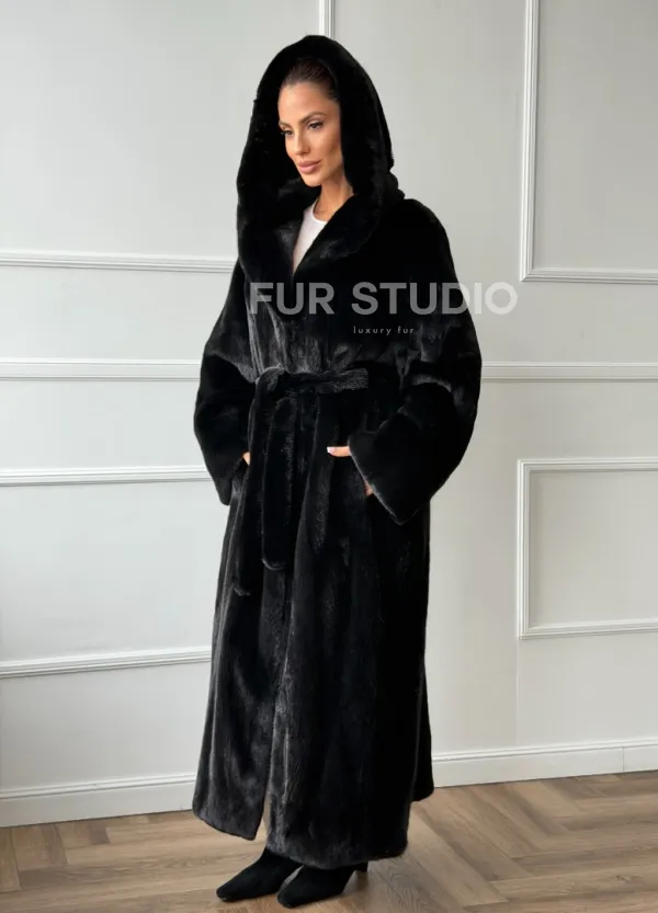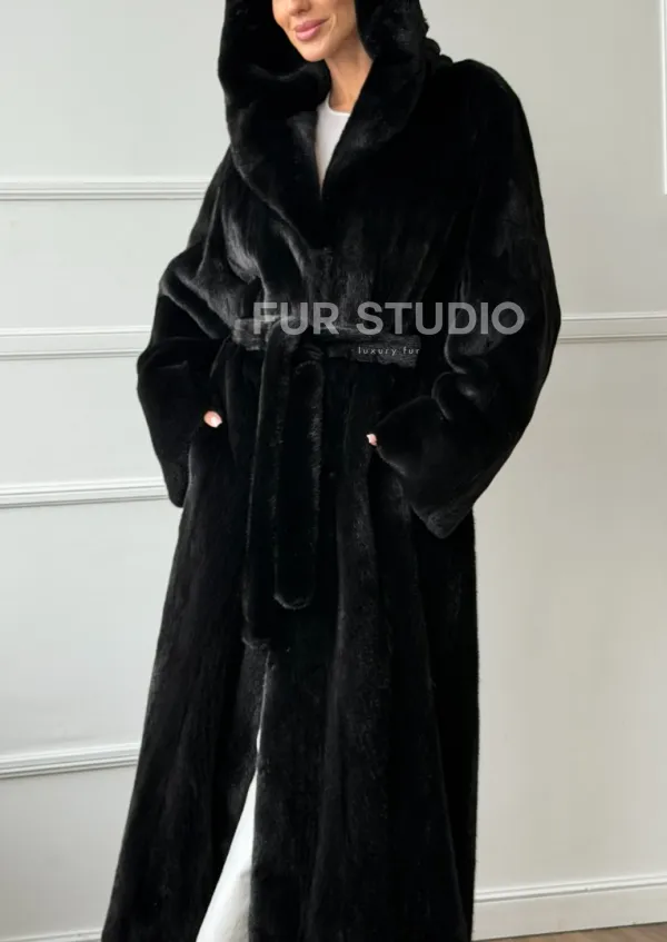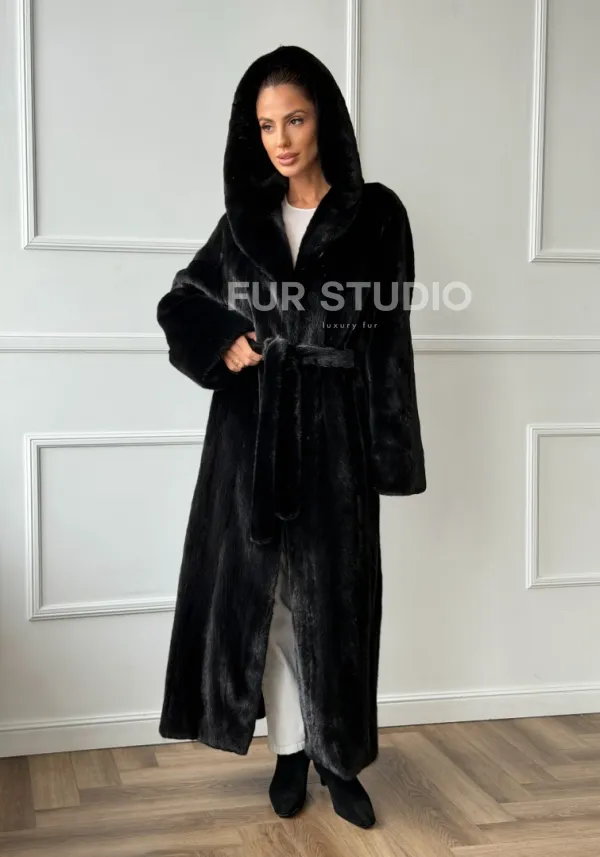 Чёрная норковая шуба модель «кимоно» с капюшоном кобра доступна для покупки в нашем шоуруме Furs Studio в . У нас так же есть доставка во все города России. Добавьте немного роскоши в свой гардероб с этой шубой, которая будет служить вам многие годы.