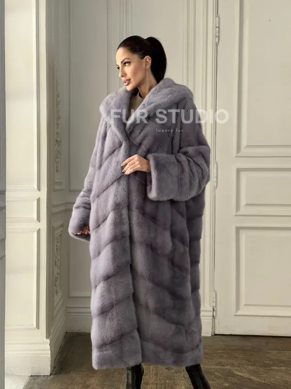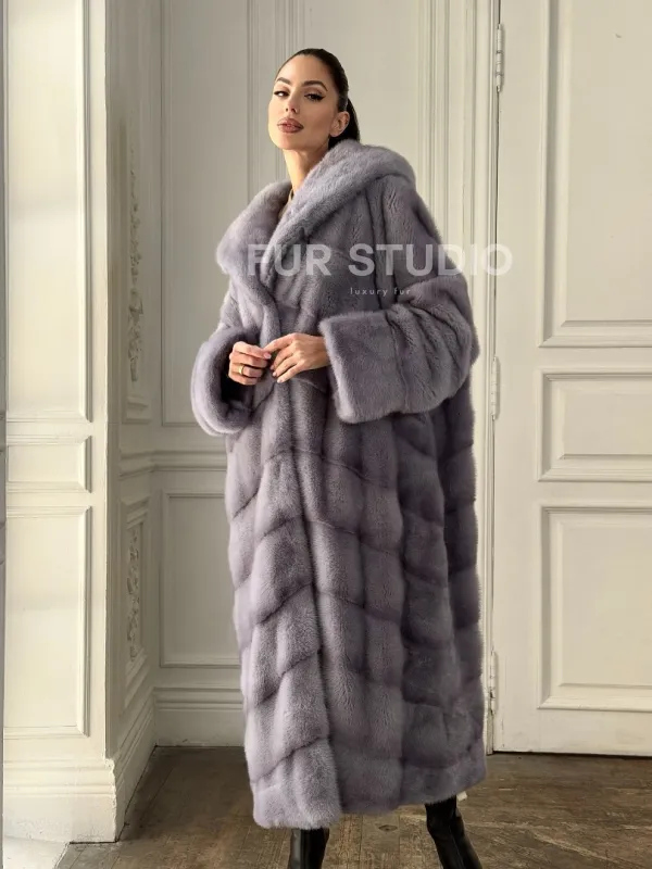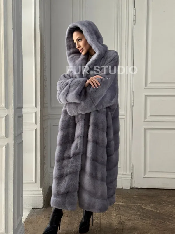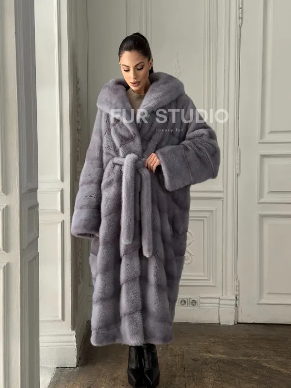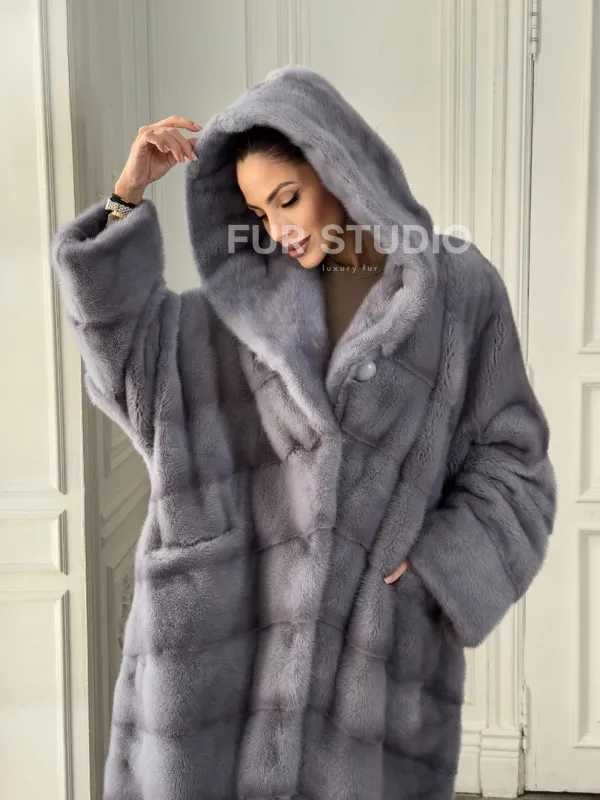 Длинная голубая норковая шуба с капюшоном PLUS SIZE доступна для покупки в нашем шоуруме Furs Studio в . У нас так же есть доставка во все города России. Добавьте немного роскоши в свой гардероб с этой шубой, которая будет служить вам многие годы.