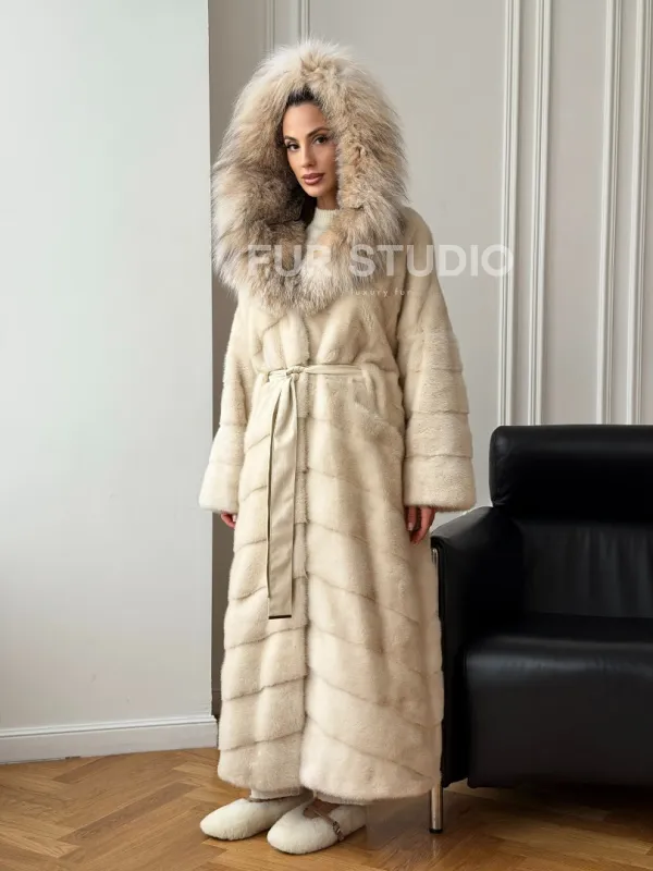 Длинная норковая шуба - капюшон из меха рыси доступна для покупки в нашем шоуруме Furs Studio в . У нас так же есть доставка во все города России. Добавьте немного роскоши в свой гардероб с этой шубой, которая будет служить вам многие годы.