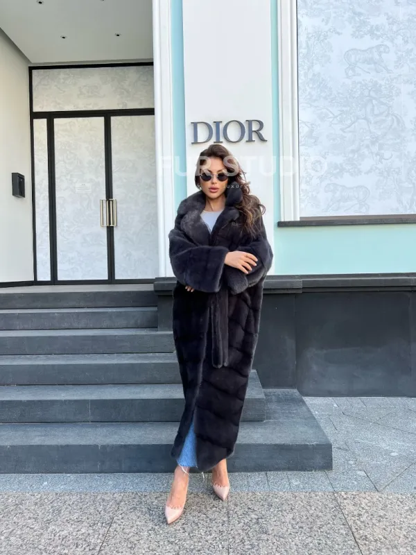 Длинная норковая шуба в цвете графит 100137