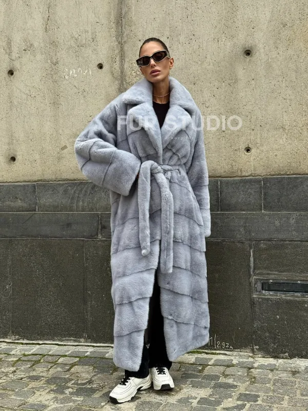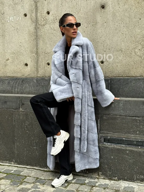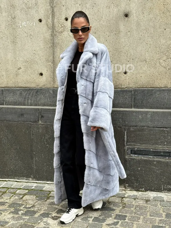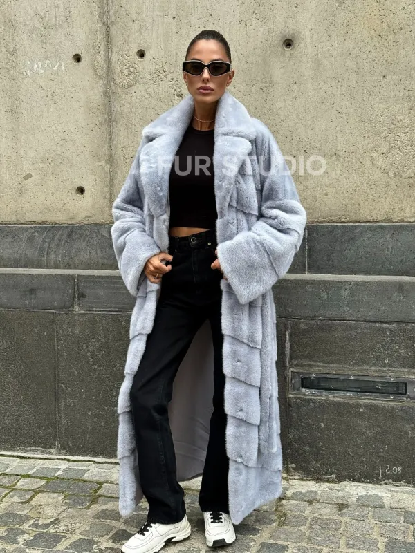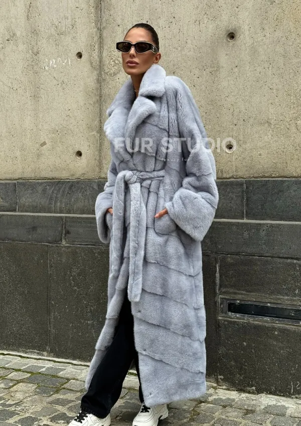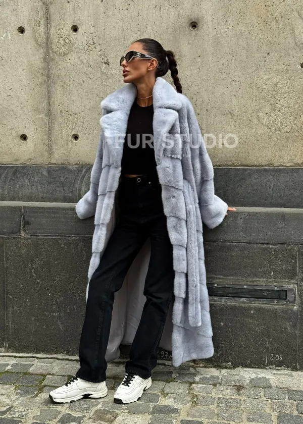 Длинная шуба из голубой скандинавской норки 102112