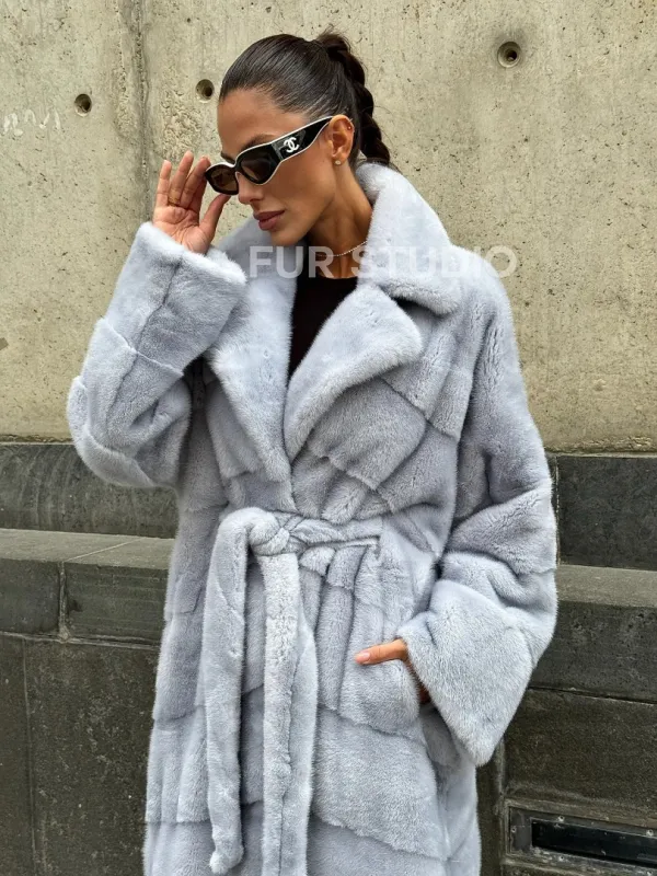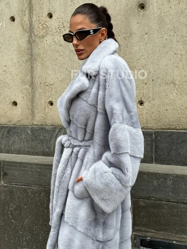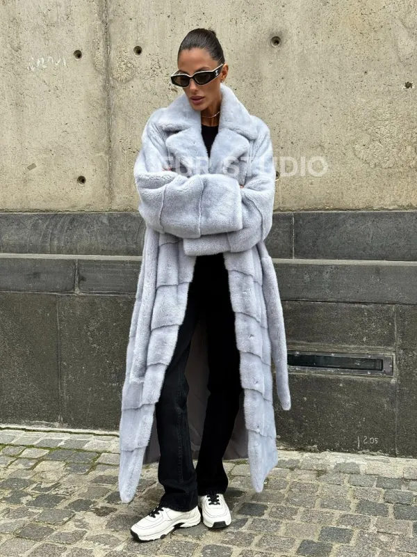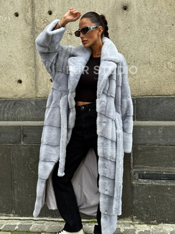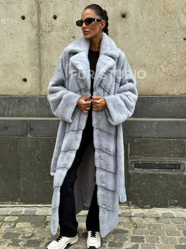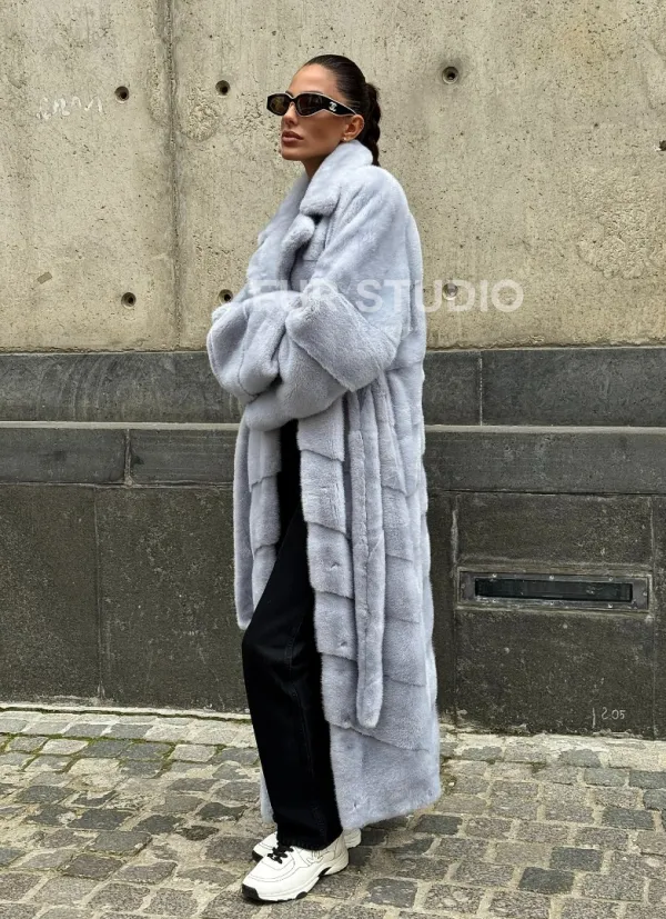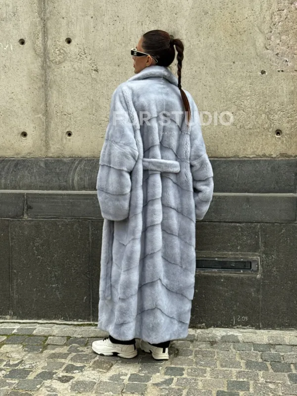 Длинная шуба из голубой скандинавской норки 102112