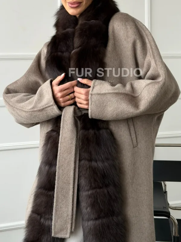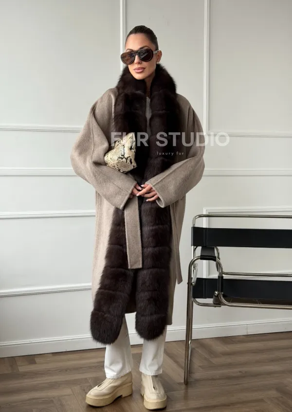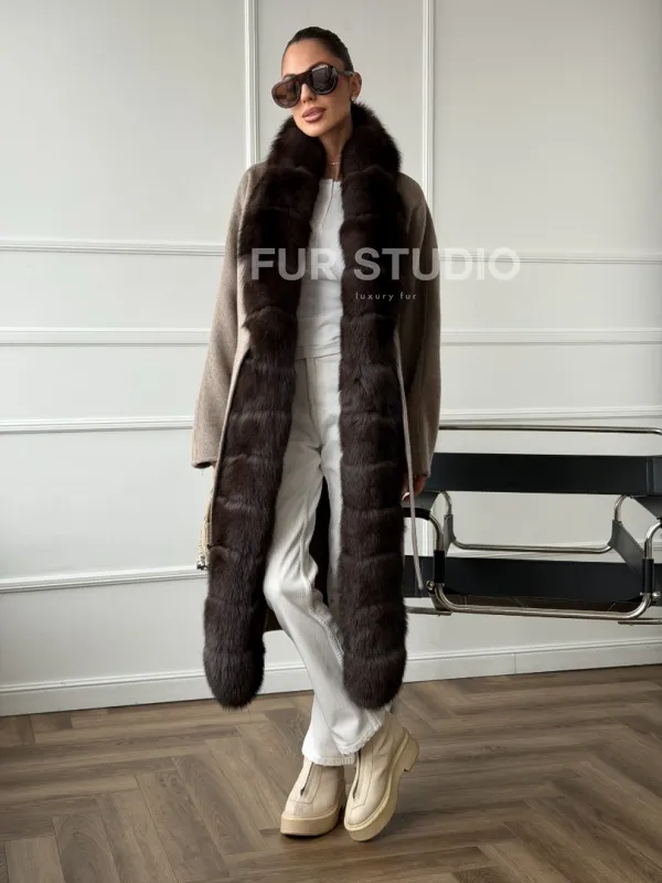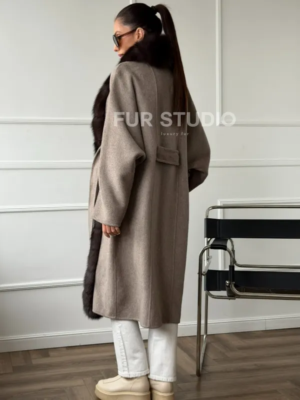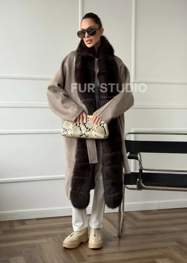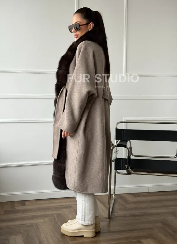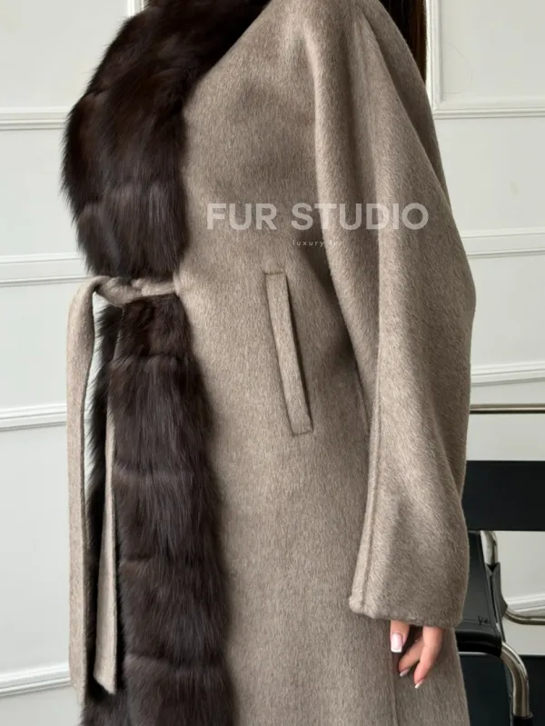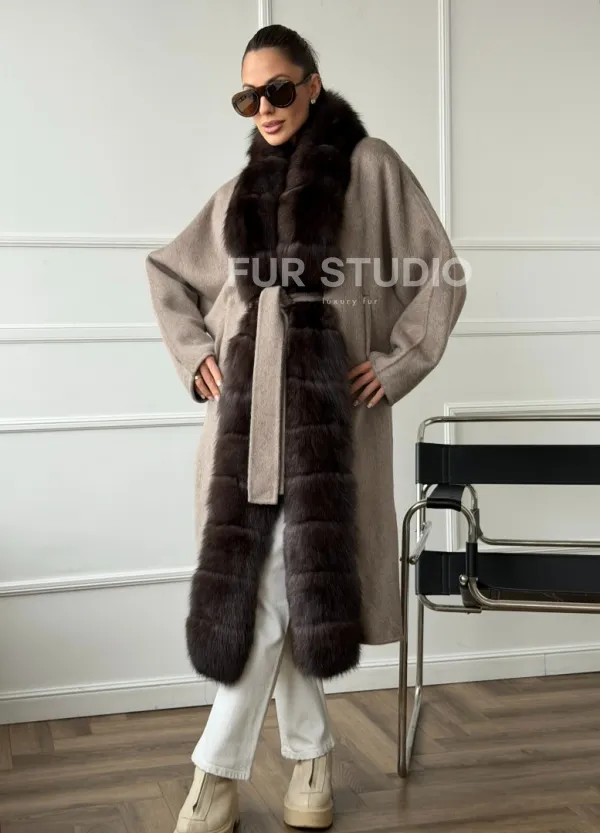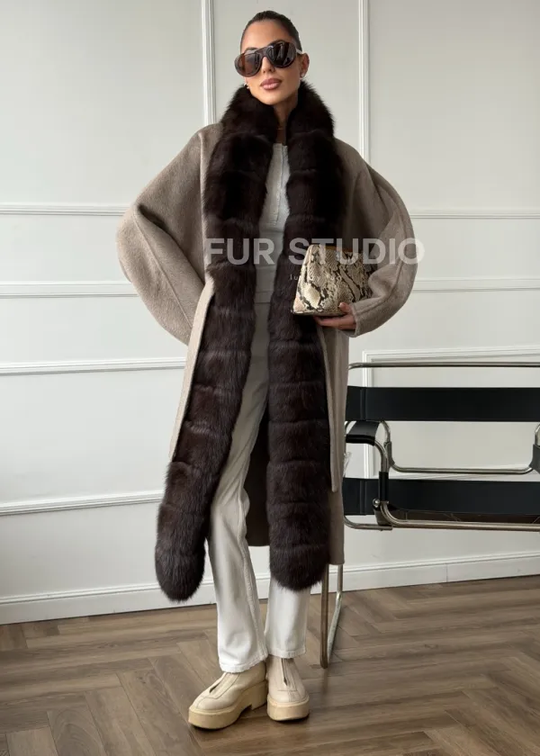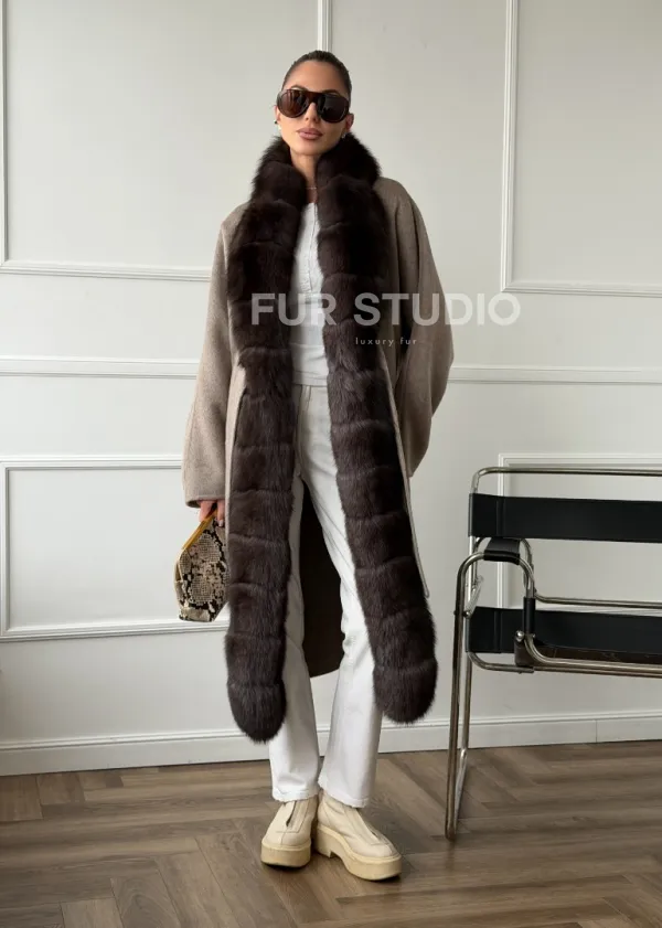Длинное пальто с мехом финского песца 102662