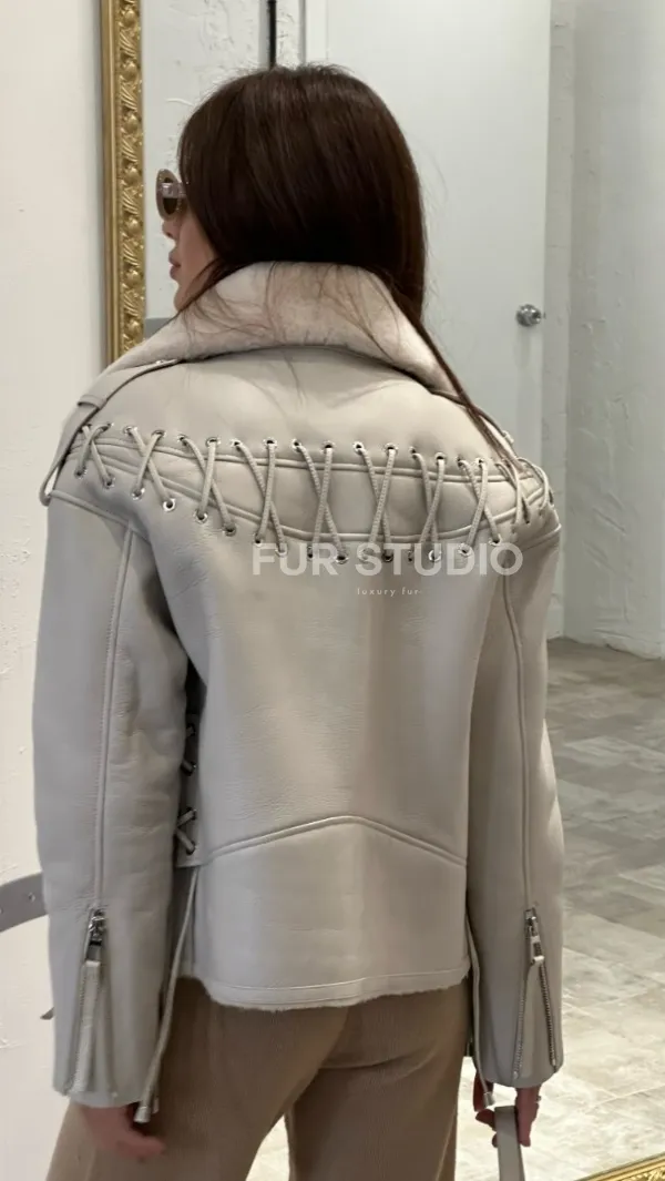 Дубленка-авиатор из натуральной овчины со шнуровкой 100341