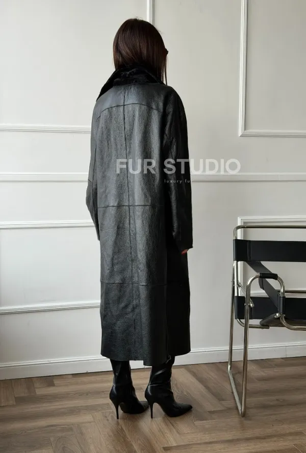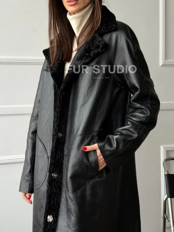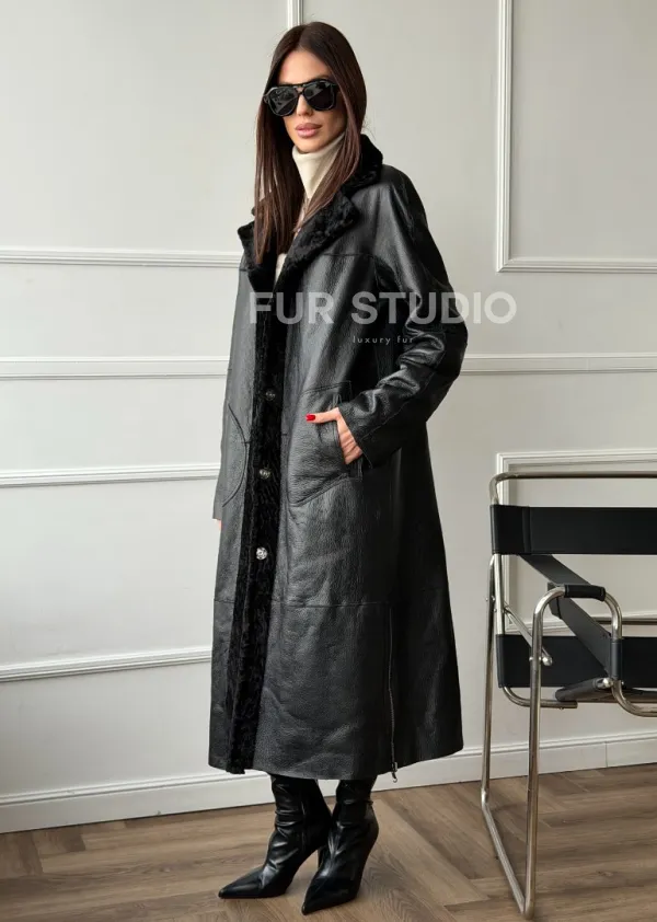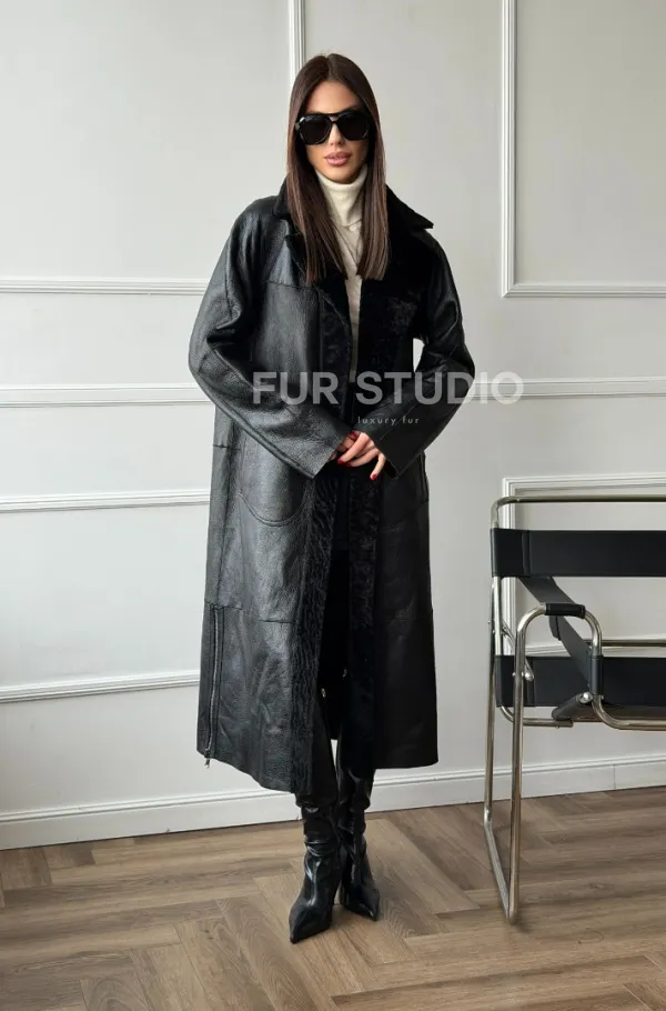 Дубленка из натуральной овчины астраган. Модель предлагается в размерах от 42 до 48. Оптимальная длина моделей 115-120 см подчеркивает линии вашей фигуры. Эта дубленка станет неотъемлемой частью гардероба для тех, кто предпочитает роскошь и утонченность натуральной кожи.