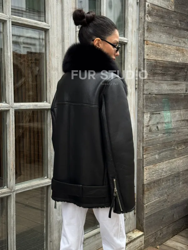 Дубленка из натуральной овчины с мехом песца 100679
