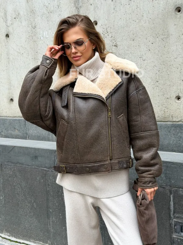 Дубленка - пилот женская. Модель предлагается в размерах от 42 до 48. Оптимальная длина моделей 50-55 см подчеркивает линии вашей фигуры. Эта дубленка станет неотъемлемой частью гардероба для тех, кто предпочитает роскошь и утонченность натуральной кожи.