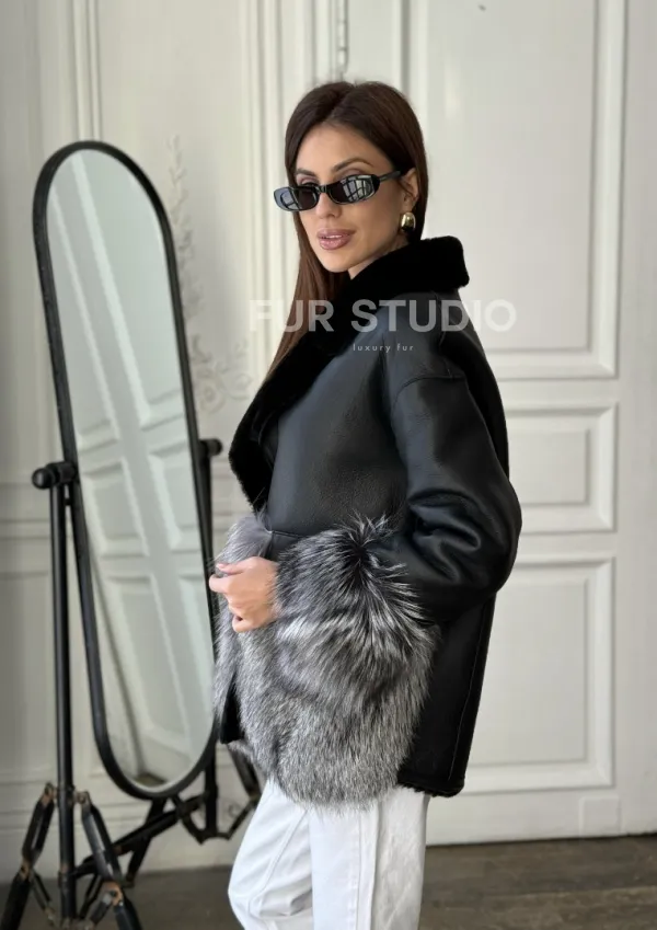 Дубленка с мехом чернобурки - цвет черный 100678