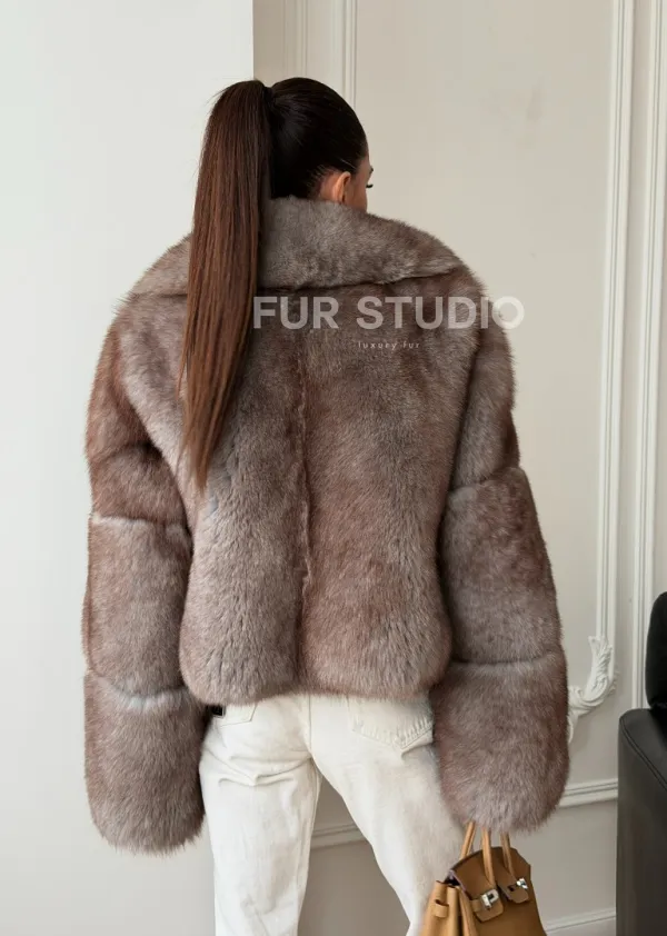 Мех данной шубы финский песец, цвет коричневый. Предлагается в размерах от 40 до 48. Длина модели 55-60 см, что выгодно подчеркивает фигуру девушек. Эта модель идеально подойдет для девушек и женщин, предпочитающих роскошные натуральные меха.