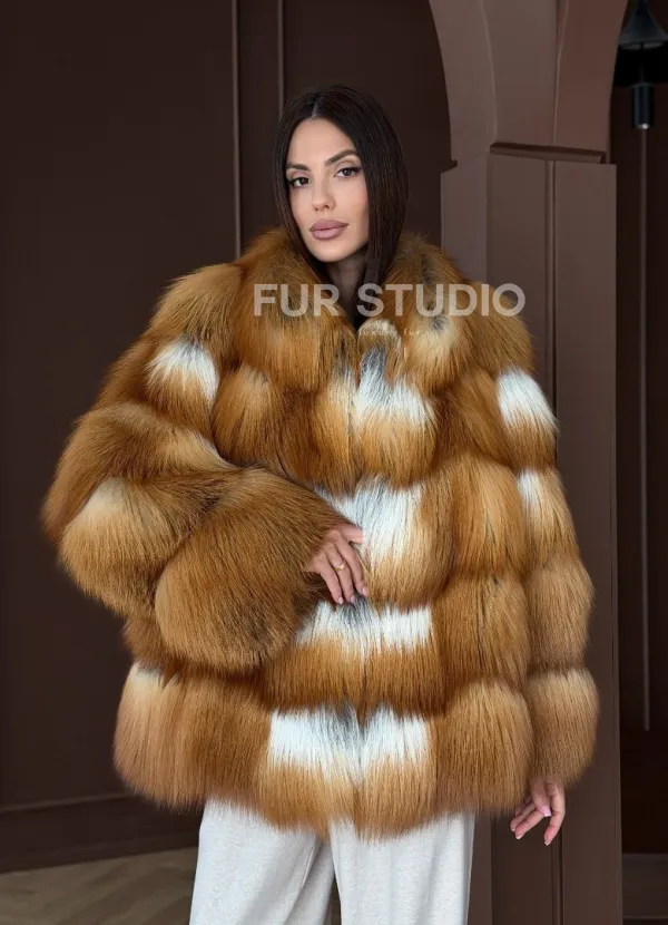Короткая шуба из рыжей лисы 102903