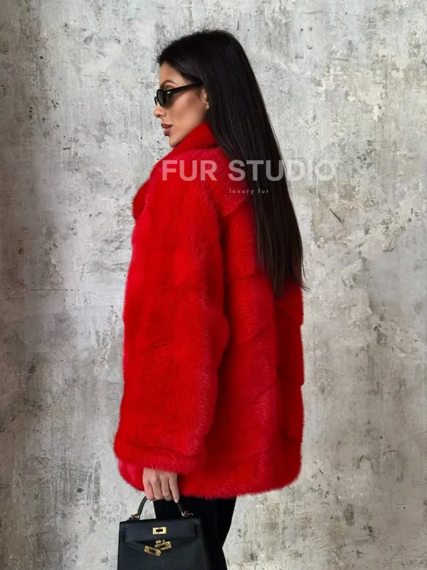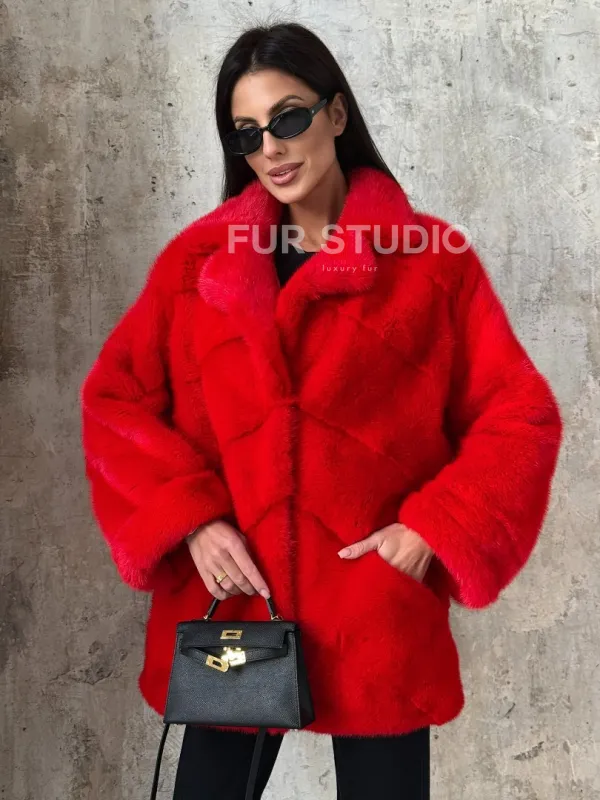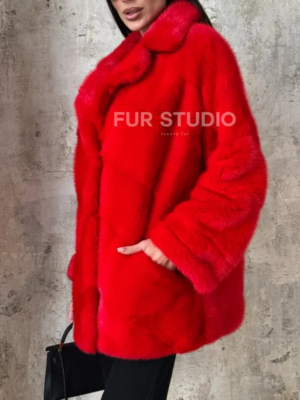 Полушубок норковый в красом оттенке отличный выбор для женщин с утонченным вкусом. Необычный цвет выгодно подчеркнет цвет волос и глаз владелицы. Прямой крой скроет недостатки фигуры и зрительно вытянет силуэт. Оригинальный воротник сделает акцент на изяществе шеи. Широкие манжеты подчеркнут изящество кистей. Удобные карманы позаботятся о тепле ручек.