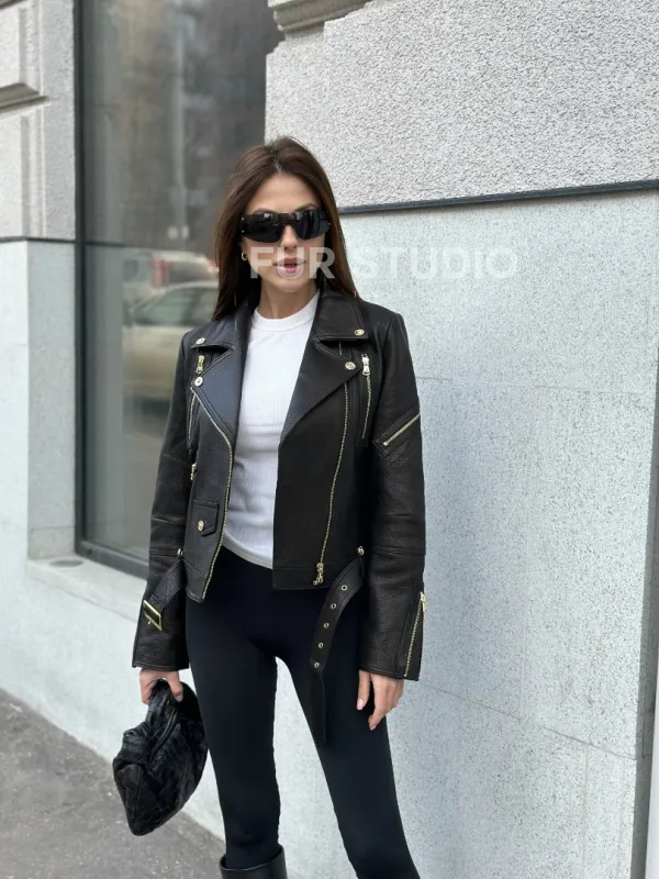 Куртка из натуральной кожи черного цвета доступна для покупки в нашем шоуруме Furs Studio в , где также предоставляется удобная доставка во все города России.