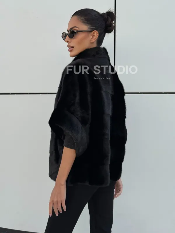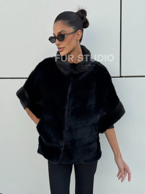 Материал выбранной модели — аукционная норка, доступна в цвете черный. Куртка предлагается в разнообразии размеров, от S до XL, а ее длина составляет 55-60 см, что выигрышно подчеркивает вашу фигуру. Этот вариант идеально подходит для тех, кто ценит роскошь и утонченность натуральных материалов.