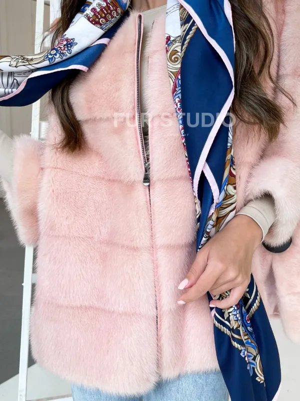 Модель сочетается с базовым гардеробом, но подойдет к вечернему наряду подходящего оттенка. Отличный вариант для автоледи. Разрезы по бокам не сковывают движения. Элегантный крой при необходимости скроет недостатки фигуры. Купить норковую кофту на молнии в цвете сакура могут девушки, которые не боятся выглядеть женственно и воздушно.