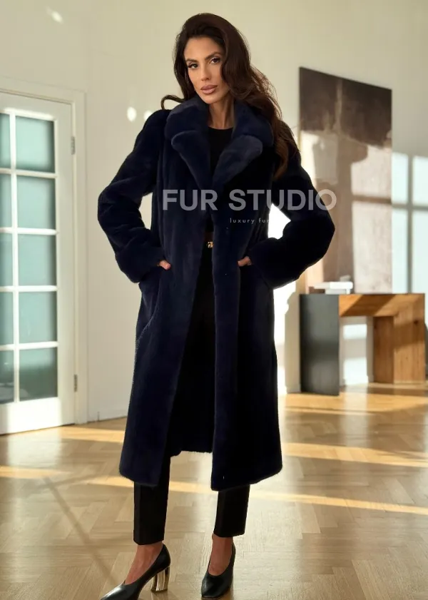 Норковая шуба темно-синего цвета доступна для покупки в нашем шоуруме Furs Studio в . У нас так же есть доставка во все города России. Добавьте немного роскоши в свой гардероб с этой шубой, которая будет служить вам многие годы.