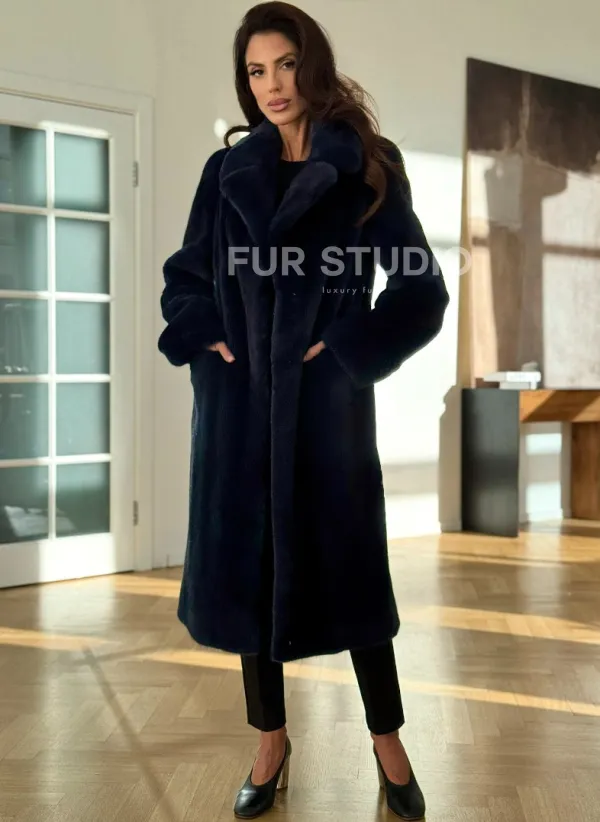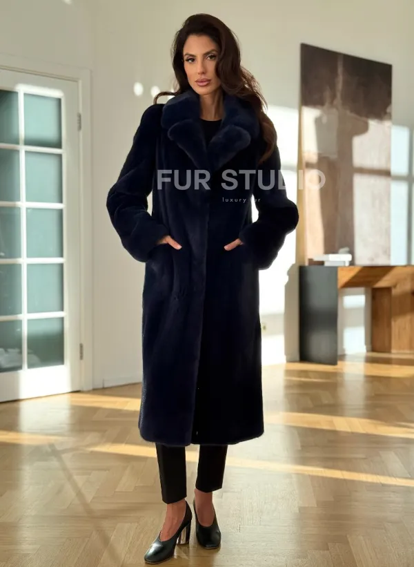 Норковая шуба темно-синего цвета 102315