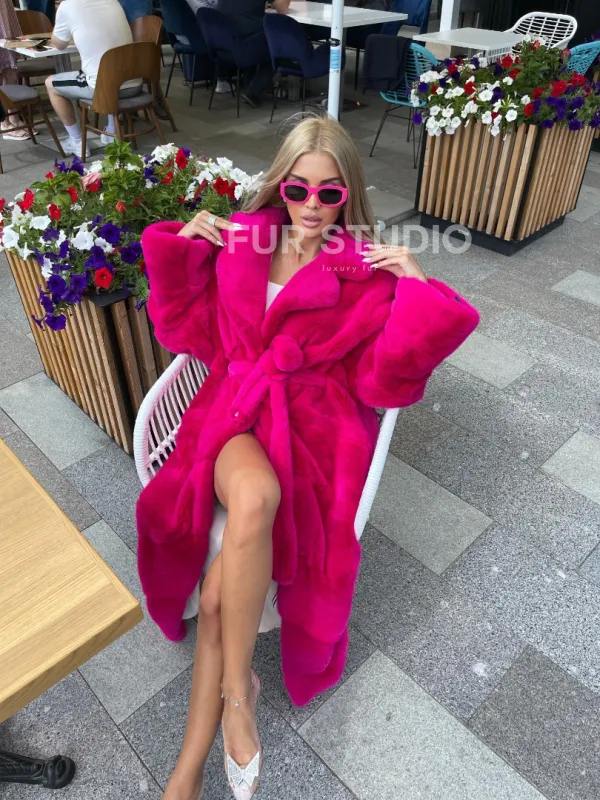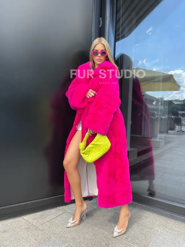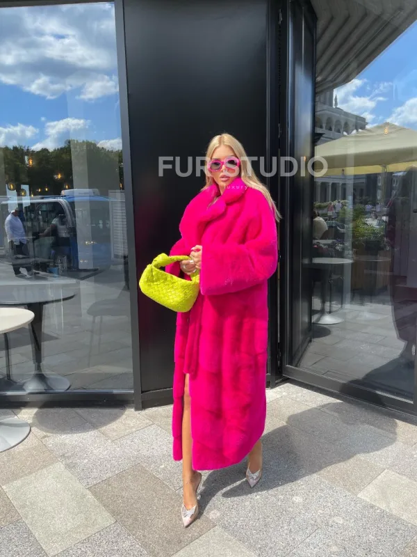 Меховой пояс выгодно очертит талию, подчеркивая ее изящество. Удобный воротник сделает акцент на изгибах шеи. Широкие манжеты подчеркивают тонкость кистей. Добавьте в образ оригинальную сумочку, и вы будете выглядеть великолепно. Купить норковую шубу в цвете фуксия могут позволить девушки, которые любят экспериментировать и удивлять.