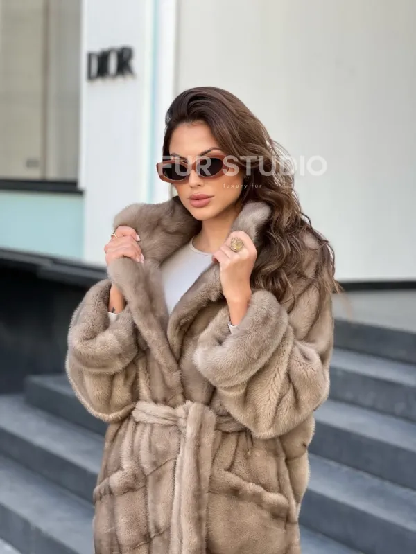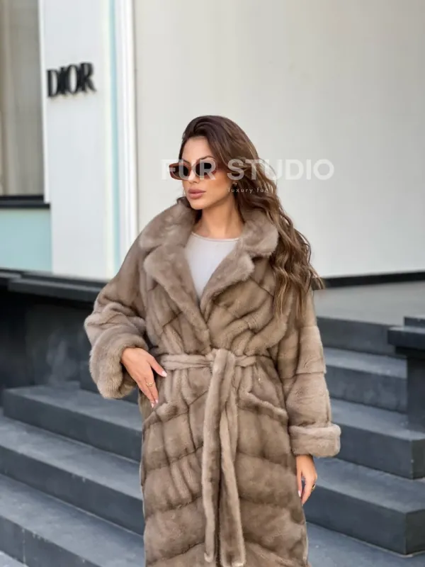 Норковое пальто - цвет капучино 100139