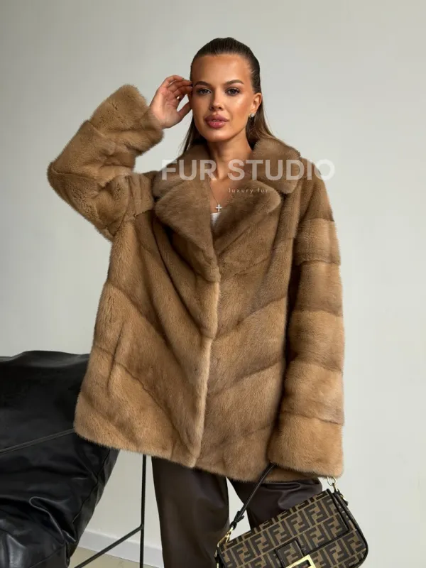 Мех данной шубы аукционная норка, цвет бежевый. Предлагается в размерах от 42 до 44. Длина модели 70-75 см, что выгодно подчеркивает фигуру девушек. Эта модель идеально подойдет для девушек и женщин, предпочитающих роскошные натуральные меха.