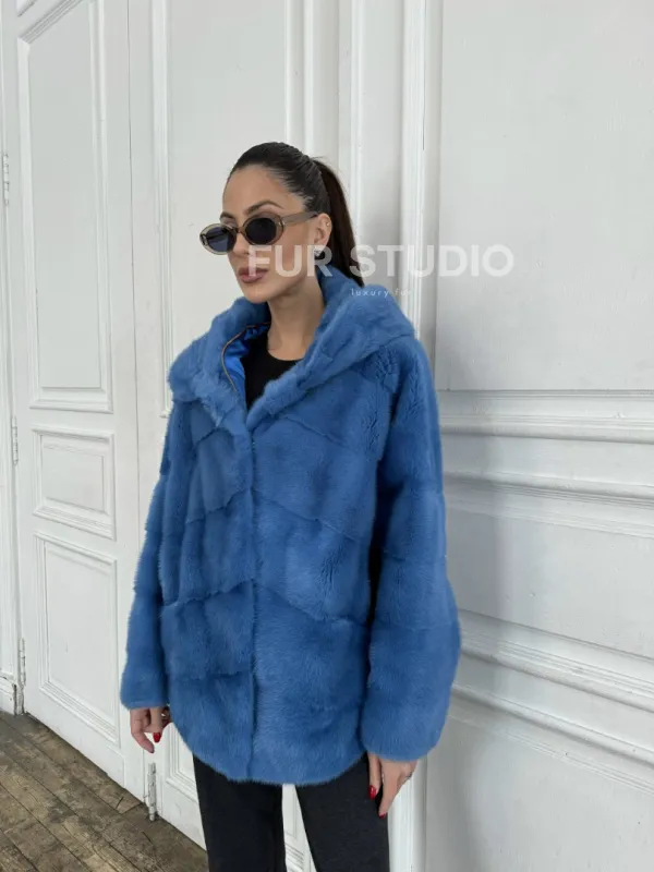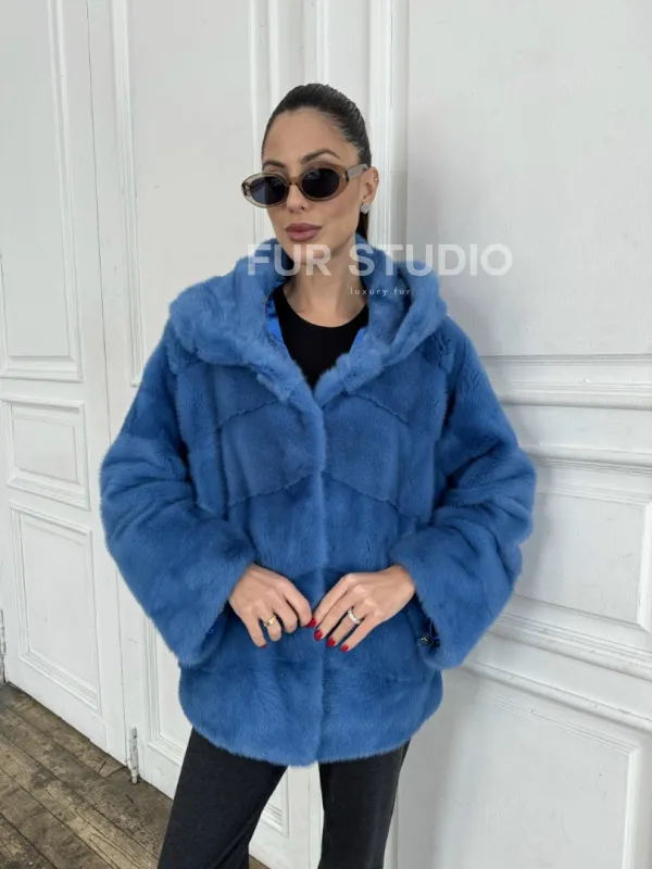 Норковый полушубок с капюшоном, паркет - цвет васильковый доступна для покупки в нашем шоуруме Furs Studio в . У нас так же есть доставка во все города России. Добавьте немного роскоши в свой гардероб с этой шубой, которая будет служить вам многие годы.