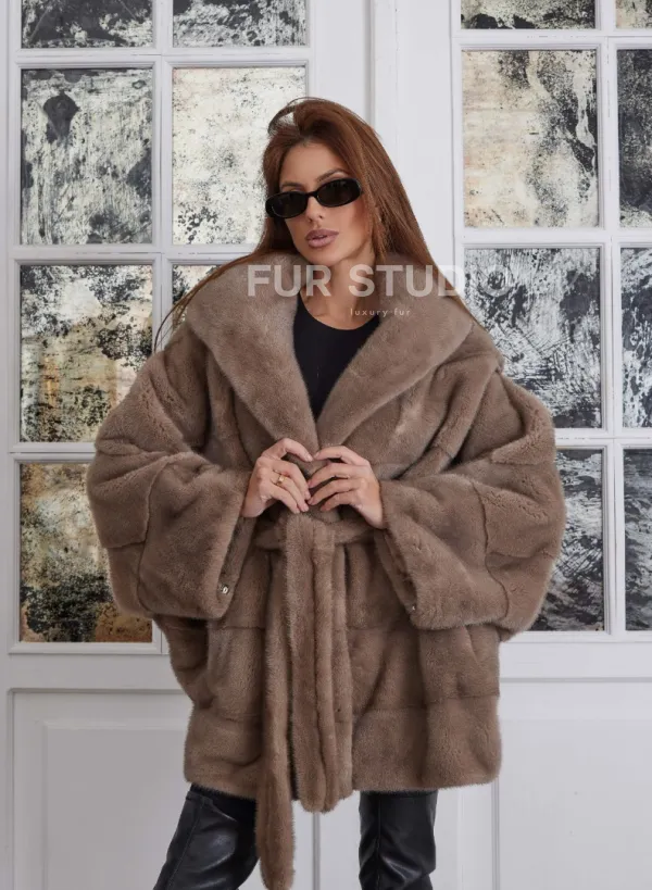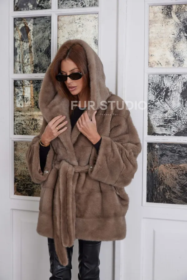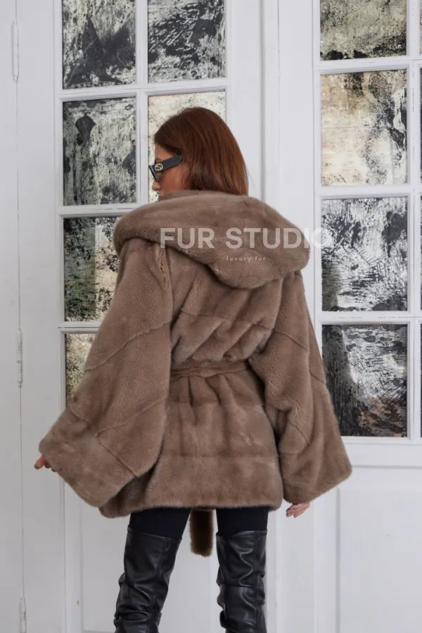 Палевая летучая мышь мех норка с капюшоном - NAFA MILK 100760