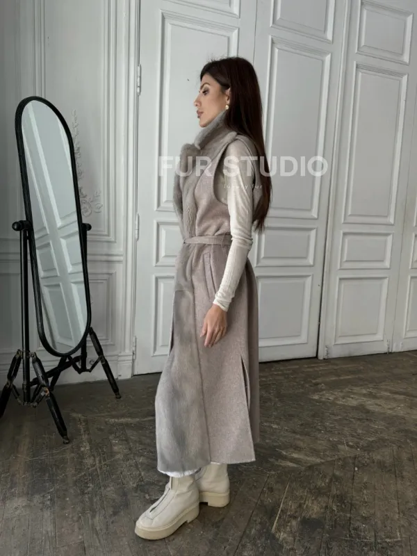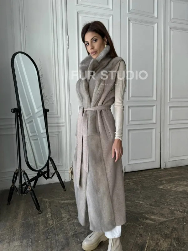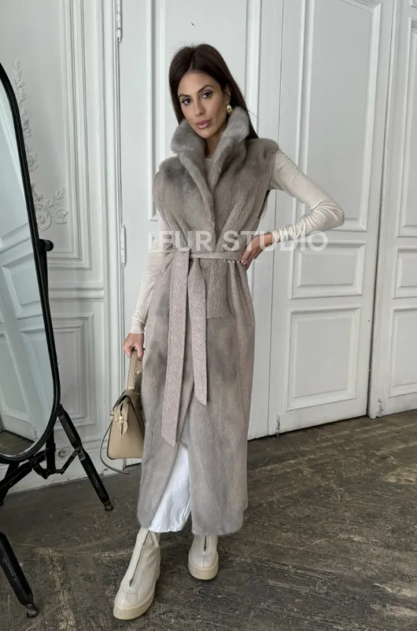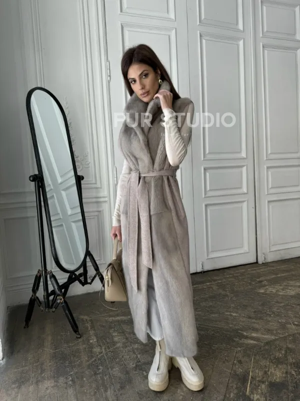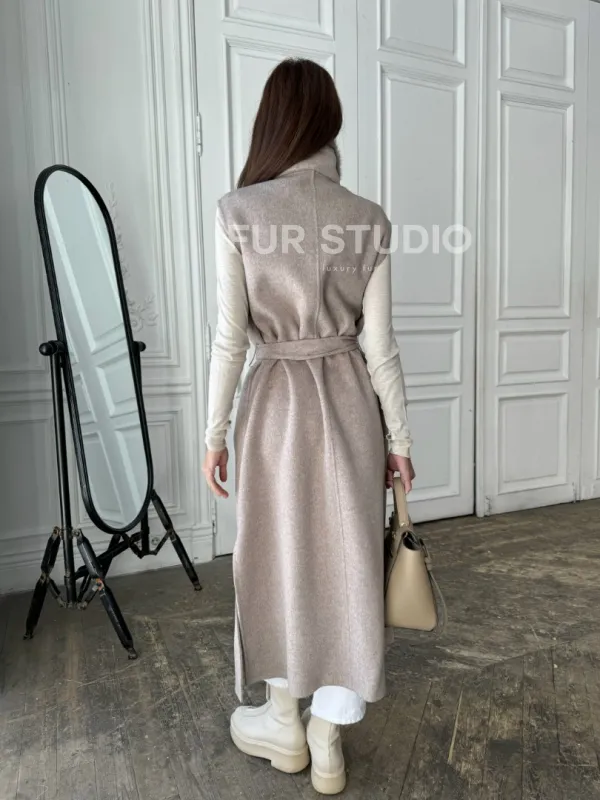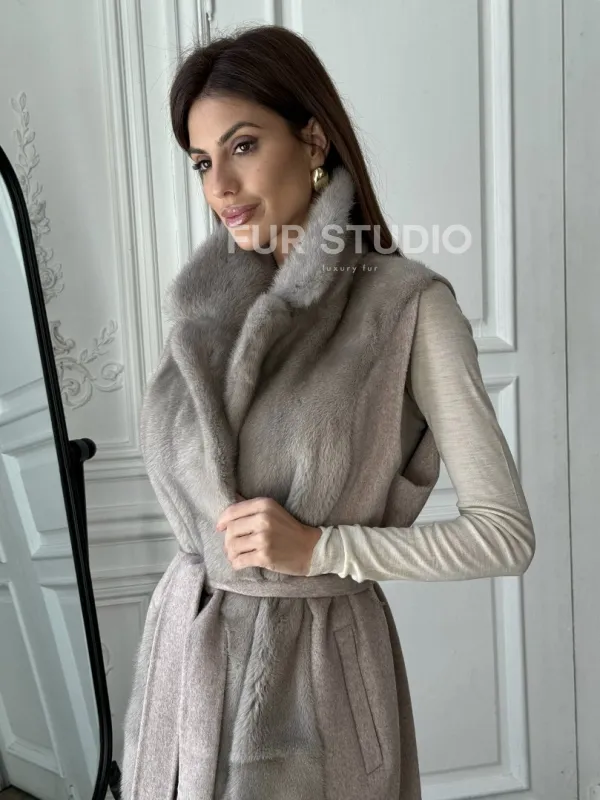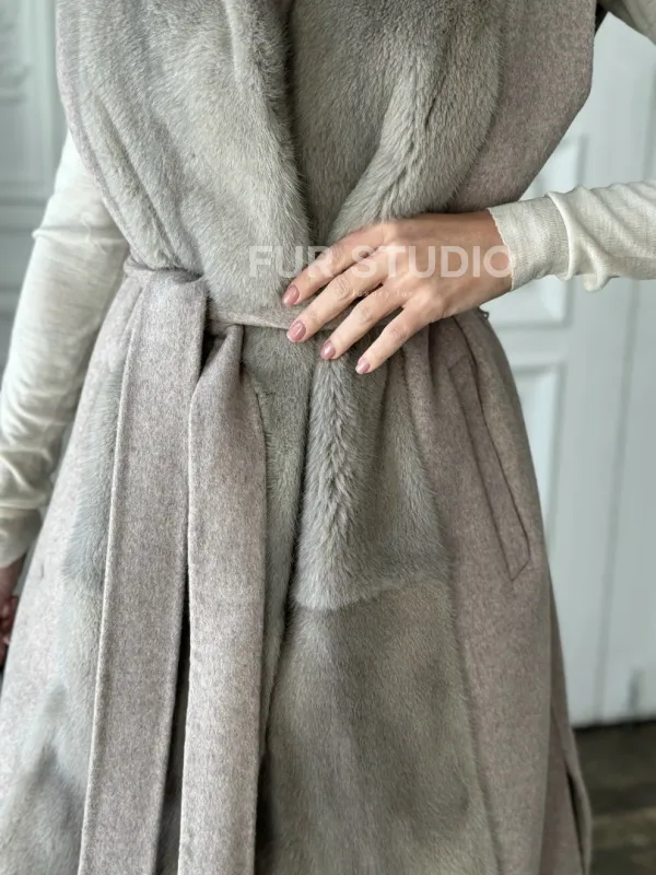 Пальто без рукавов с отделкой из меха норки 100889