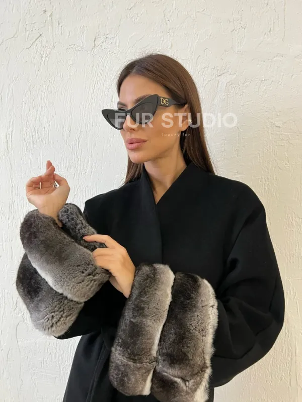 Пальто с мехом шиншиллы - цвет черный 100363