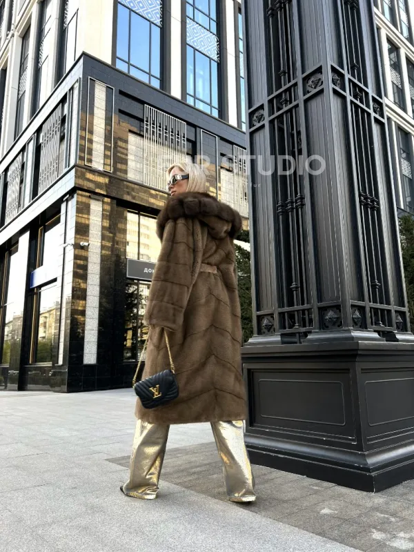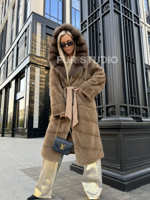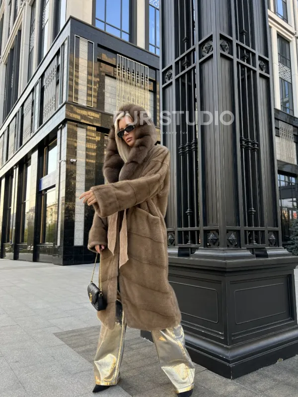 Пастель норковая шуба из меха NAFA капюшон куница доступна для покупки в нашем шоуруме Furs Studio в . У нас так же есть доставка во все города России. Добавьте немного роскоши в свой гардероб с этой шубой, которая будет служить вам многие годы.