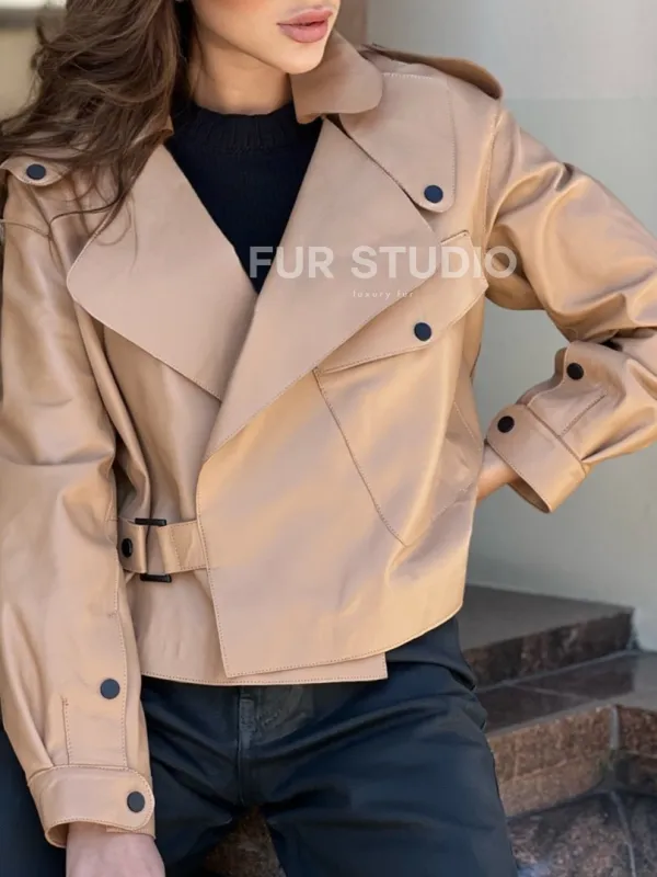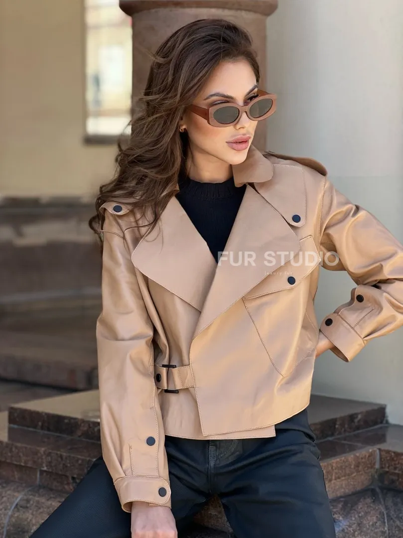 Изделие прекрасно сочетается со стилем casual, подойдет под вечерний наряд. Нестандартная модель подчеркнет индивидуальность владелицы. Качество материала будет радовать хозяйку на протяжении многих лет. Кожа приятна на ощупь и безумно легкая. Купить популярную косуху в сливочной гладкой коже могут девушки, которые любят стильные вещи.