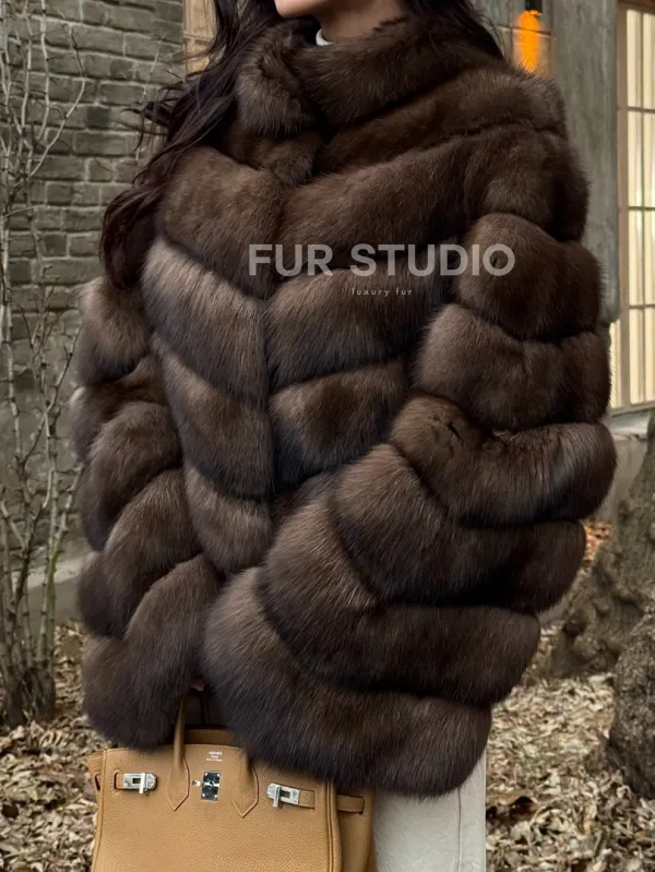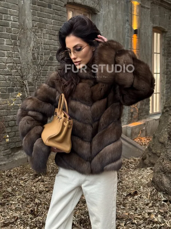 Благородный цвет выгодно оттенит цвет волос и глаз владелицы. Изделие будет гармонично смотреться с базовым гардеробом, подойдет под вечерний наряд. Добавьте к шубе брендовую сумочку и стильную обувь – будете выглядеть, как с обложки журнала. Купить роскошную шубу из меха соболя стойка воротник могут женщины, которые знают, что хотят и берут от жизни все.