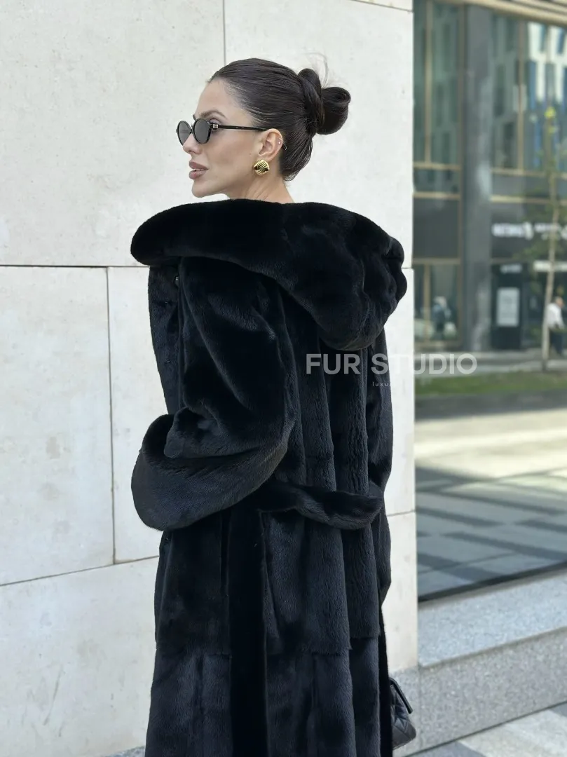Шуба норка BLACKGLAMA с капюшоном 100906