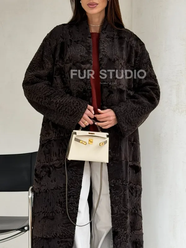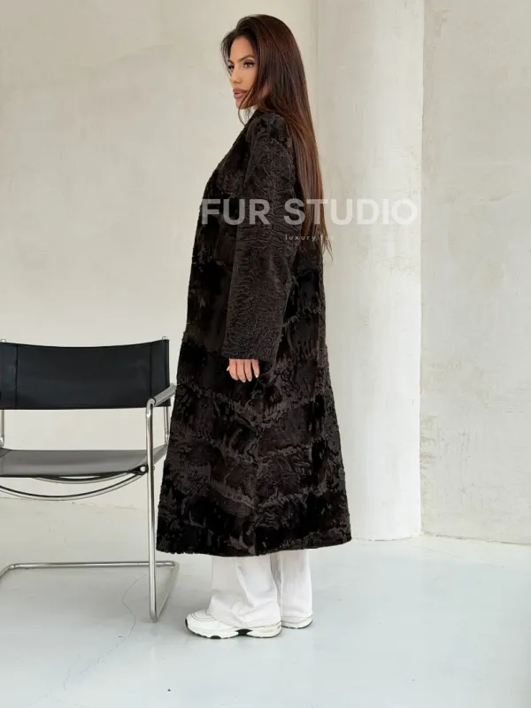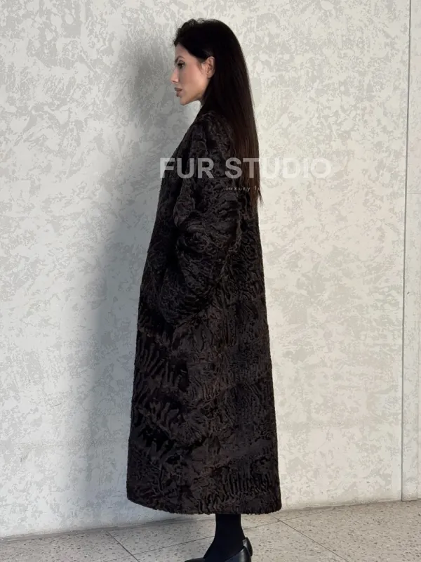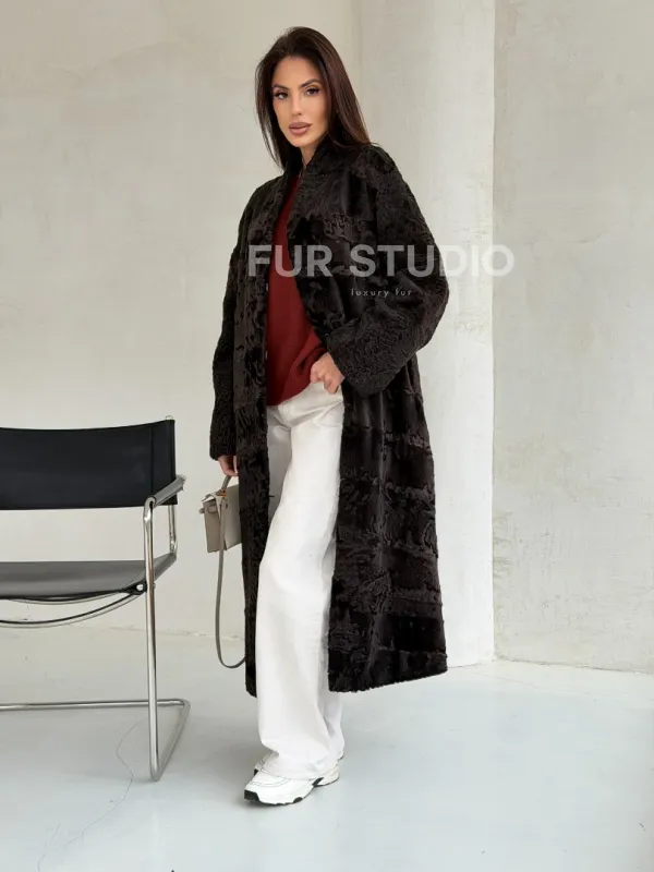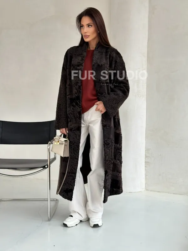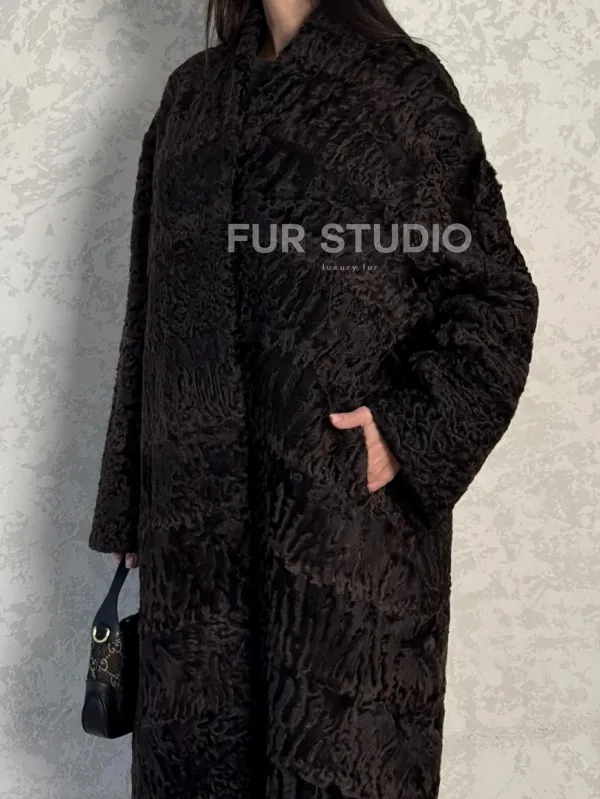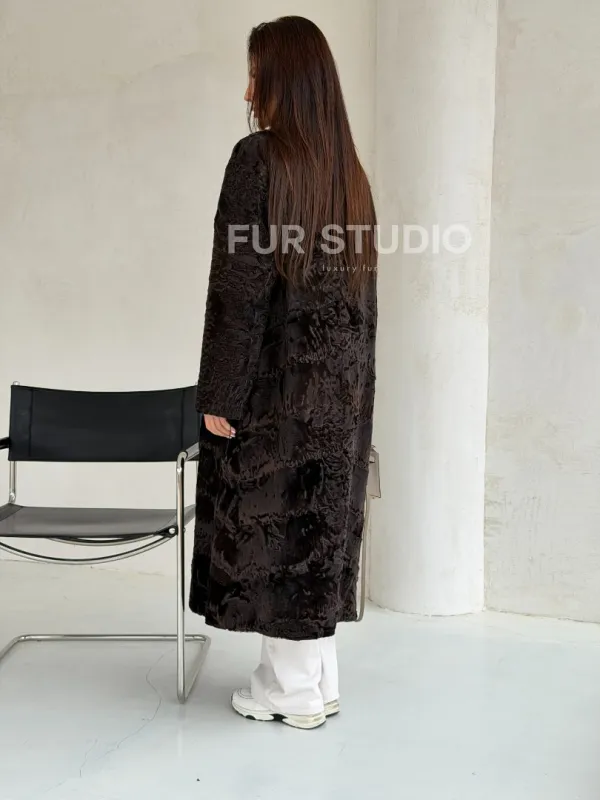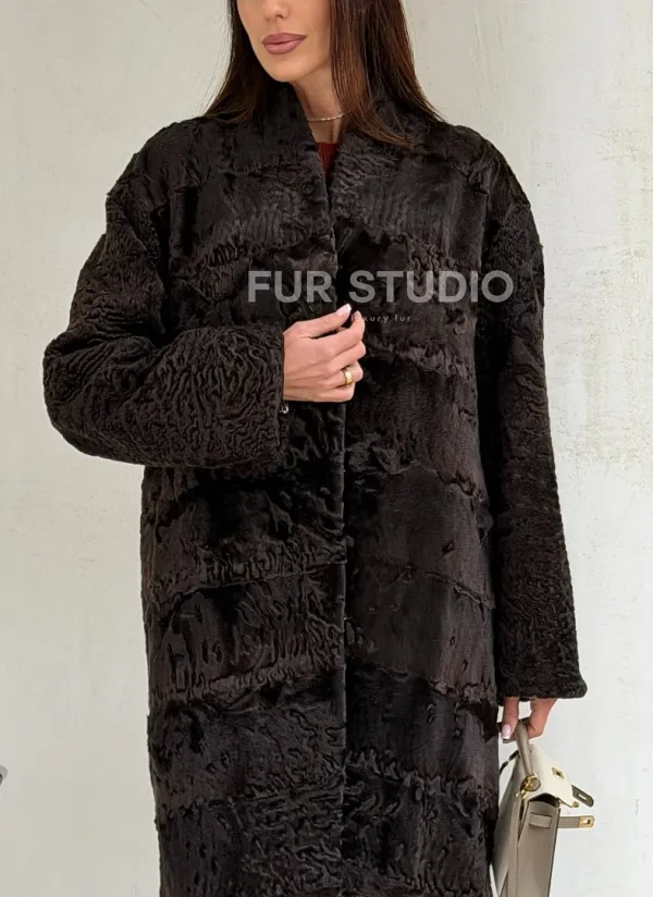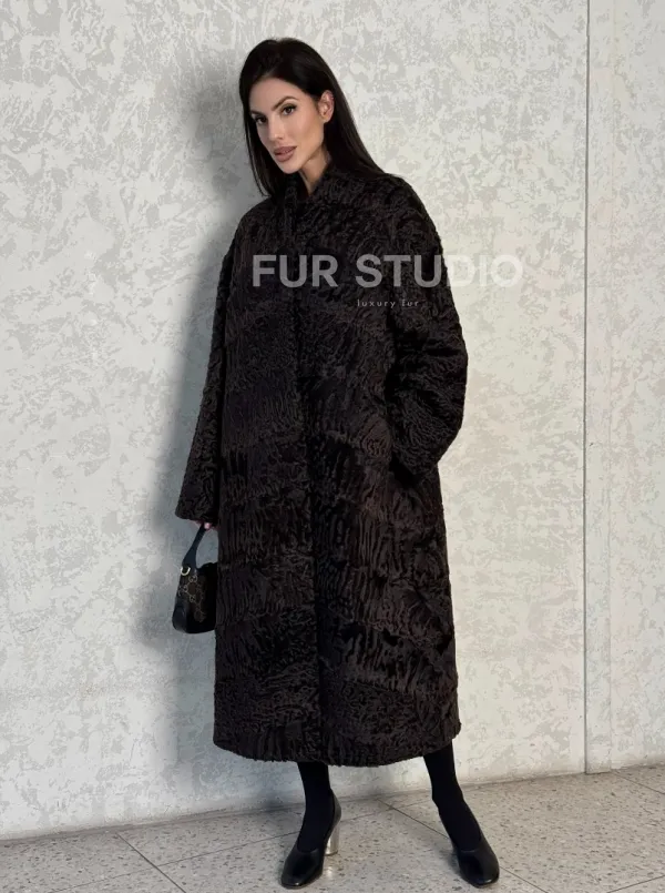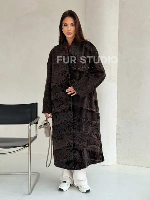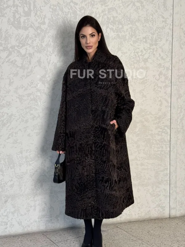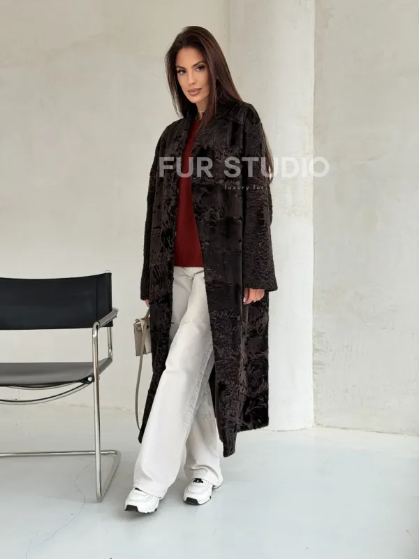 Шуба длинная из меха каракульчи в натурально-коричневом цвете доступна для покупки в нашем шоуруме Furs Studio в . У нас так же есть доставка во все города России. Добавьте немного роскоши в свой гардероб с этой шубой, которая будет служить вам многие годы.