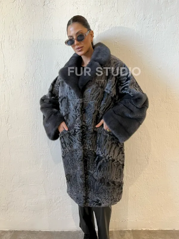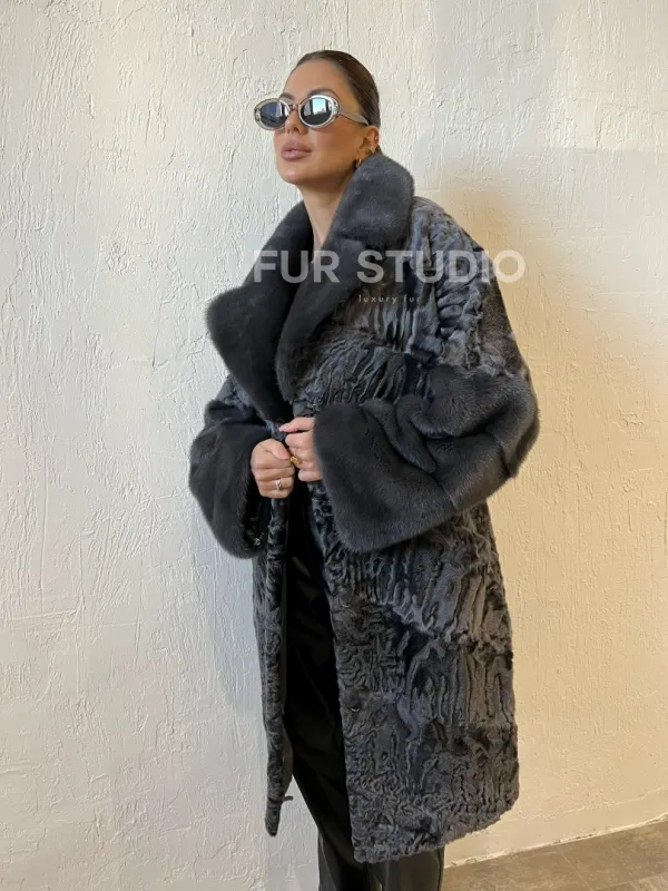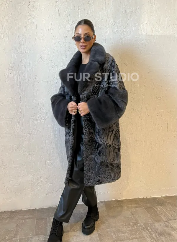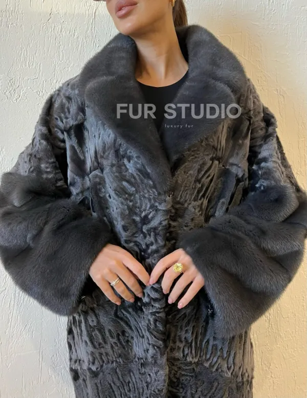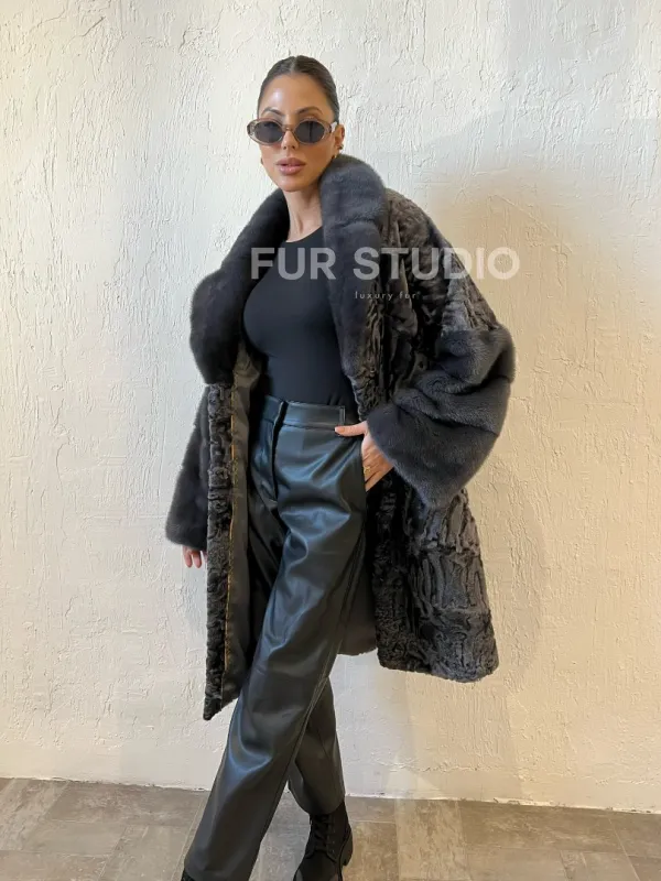 Шуба из меха каракульчи с отделкой из норки доступна для покупки в нашем шоуруме Furs Studio в . У нас так же есть доставка во все города России. Добавьте немного роскоши в свой гардероб с этой шубой, которая будет служить вам многие годы.