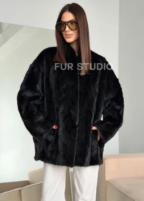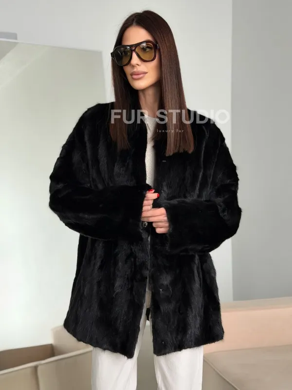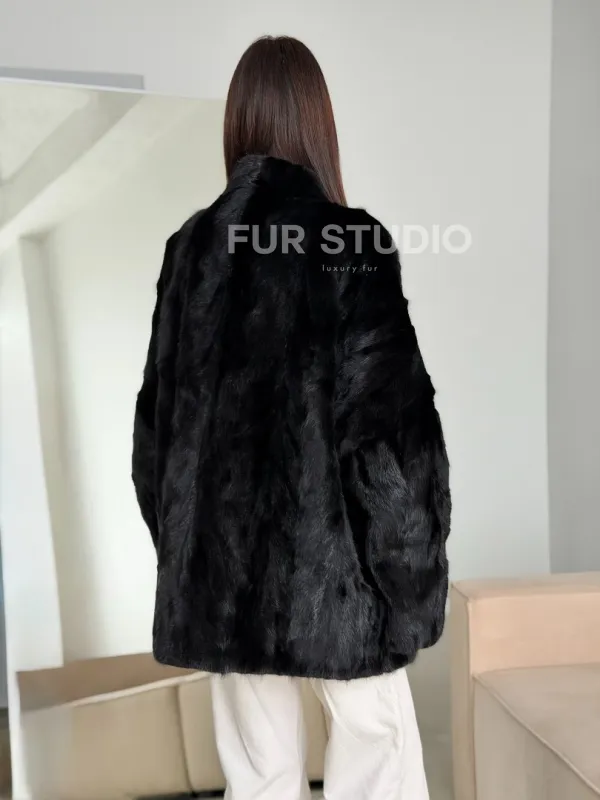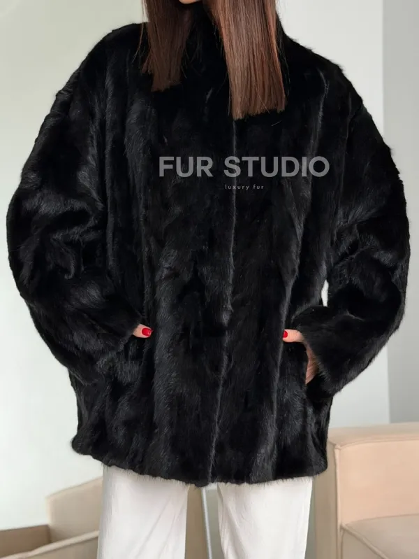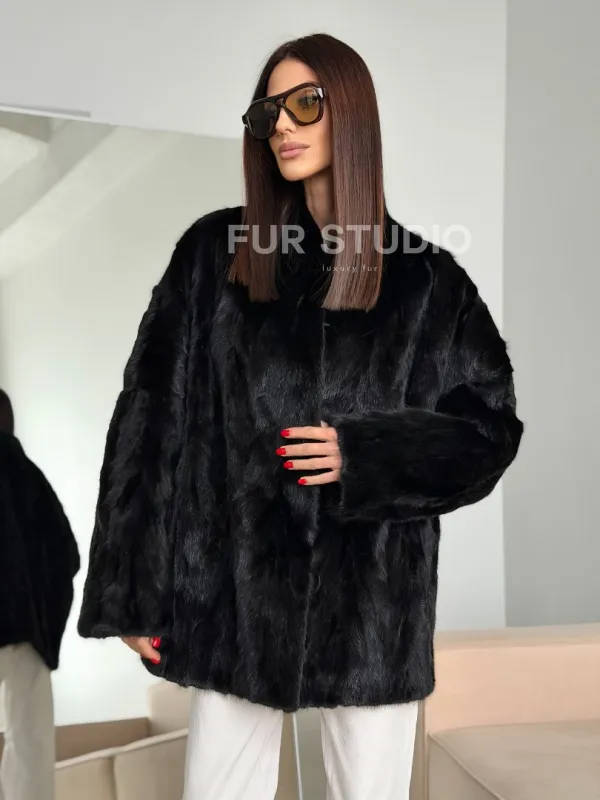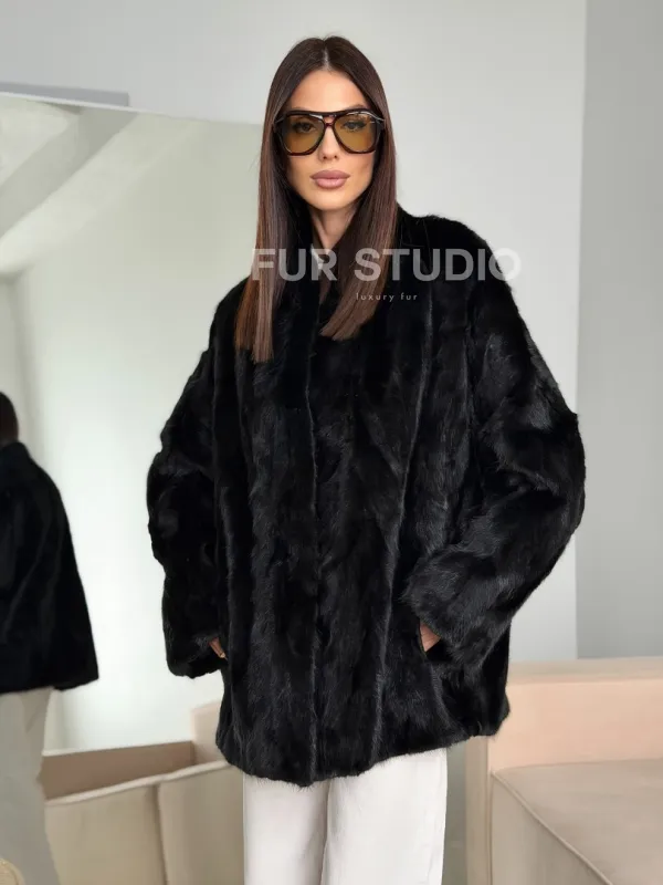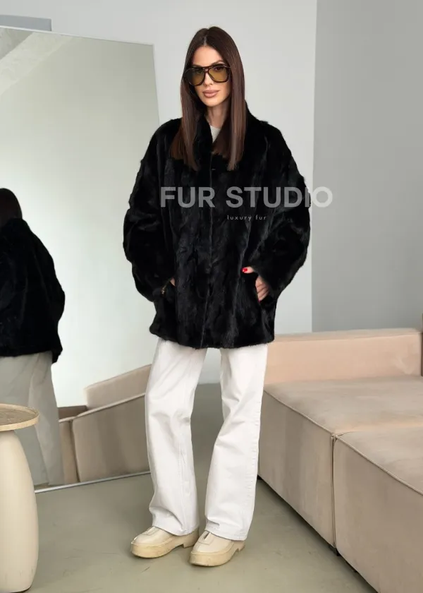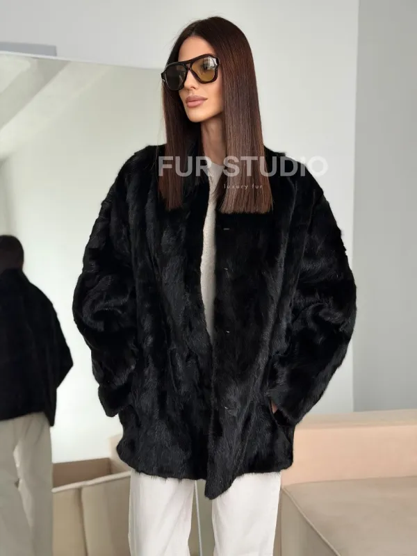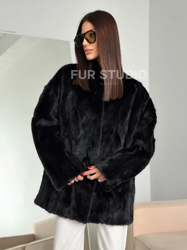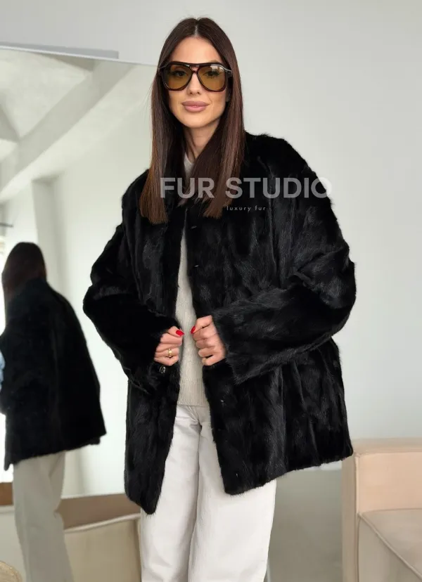 Шуба норковая из кусочков в стиле оверсайз 102773