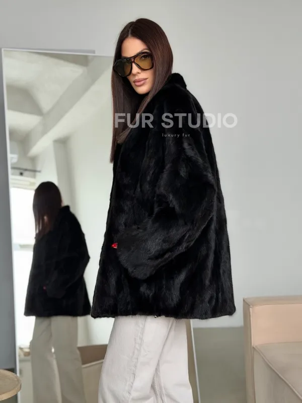 Мех данной шубы аукционная норка , цвет черный. Предлагается в размерах от 42 до 48. Длина модели 70-75 см, что выгодно подчеркивает фигуру девушек. Эта модель идеально подойдет для девушек и женщин, предпочитающих роскошные натуральные меха.
