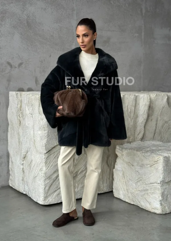 Мех данной шубы аукционная норка , цвет зеленый. Предлагается в размерах от 42 до 54 (oversize). Длина модели 75-80 см, что выгодно подчеркивает фигуру девушек. Эта модель идеально подойдет для девушек и женщин, предпочитающих роскошные натуральные меха.