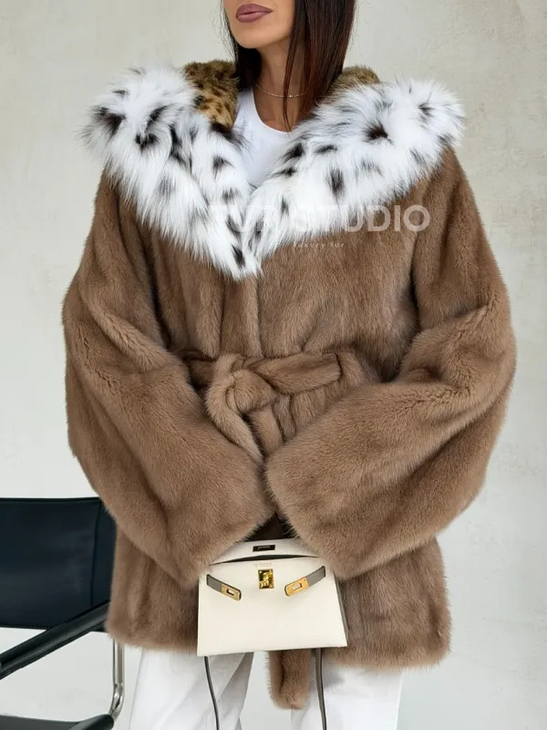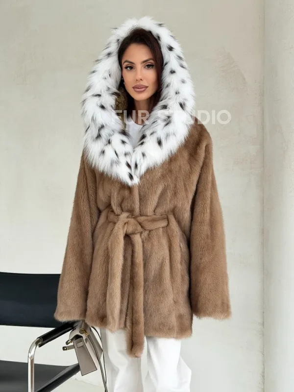 Шуба норковая пастель в роспуск с капюшоном под рысь доступна для покупки в нашем шоуруме Furs Studio в . У нас так же есть доставка во все города России. Добавьте немного роскоши в свой гардероб с этой шубой, которая будет служить вам многие годы.