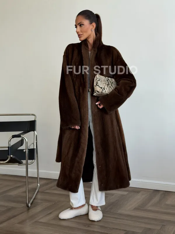 Мех данной шубы аукционная норка , цвет коричневый. Предлагается в размерах от 42 до 50. Длина модели 115-120 см, что выгодно подчеркивает фигуру девушек. Эта модель идеально подойдет для девушек и женщин, предпочитающих роскошные натуральные меха.