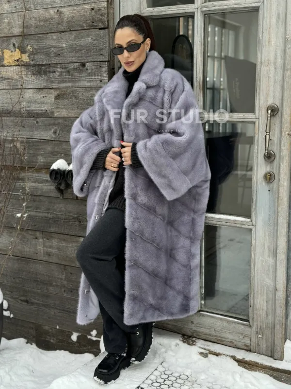 Шуба норковая в стиле Oversize - цвет серый сапфир 100860